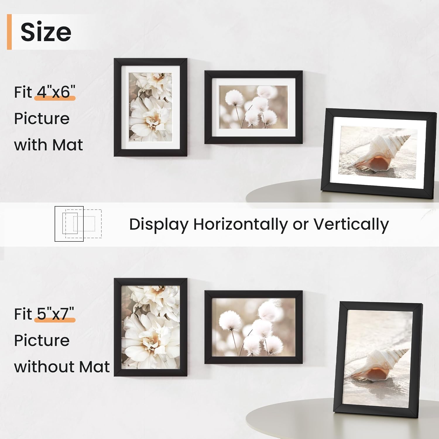 5x7 inch Picture Frame, 5x7 Photo Frames with 4x6 Removable Mat - High Definition Plexiglass - Vertical and Horizontal Display - Wall Hanging Frame - Black, 3 Pack