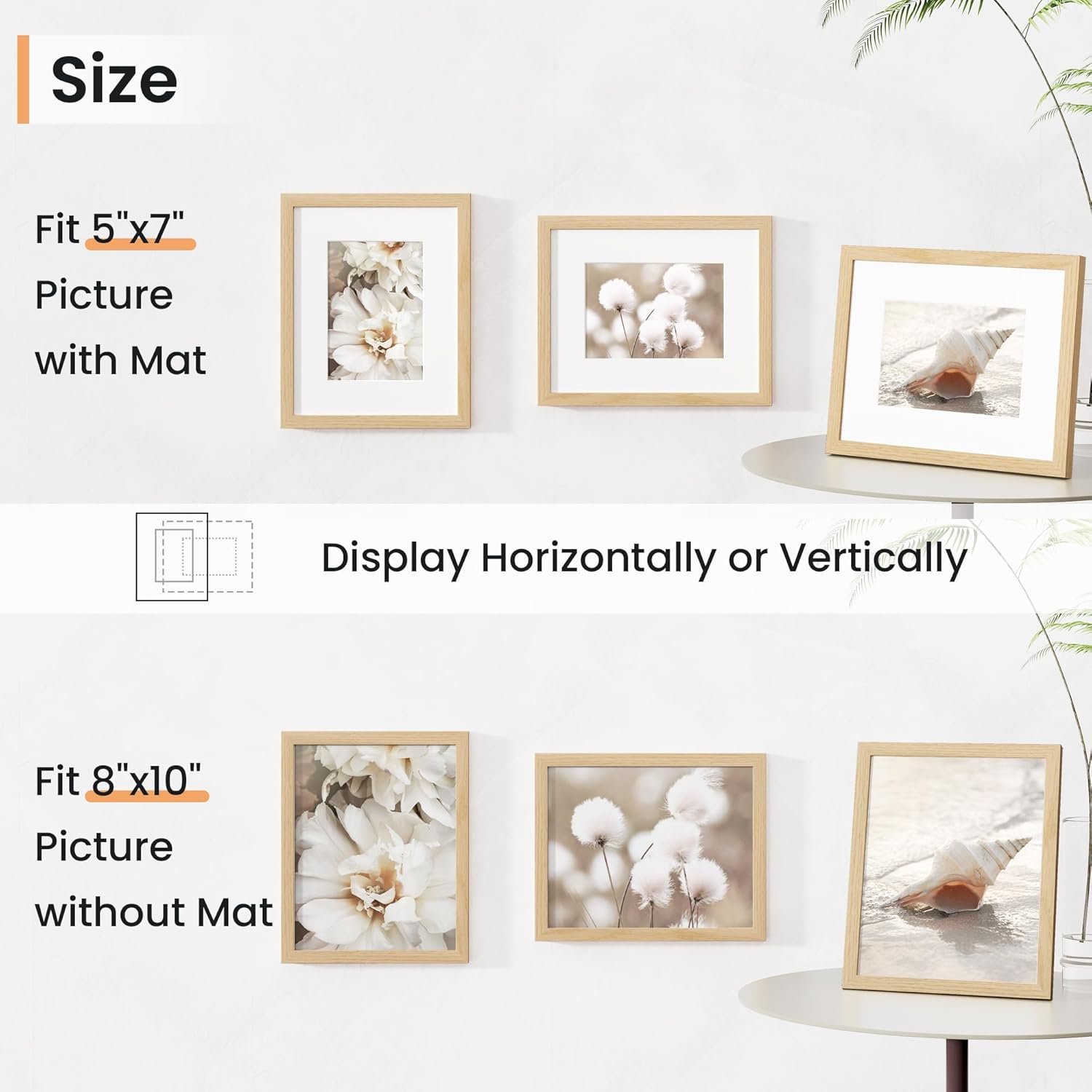 • Vertical & Horizontal Display - Our wall photo frames are versatile and easy to clip and hang. You can mount this plastic picture frame horizontally or vertically, with hanging hardware included. This picture frame maximizes your available space.