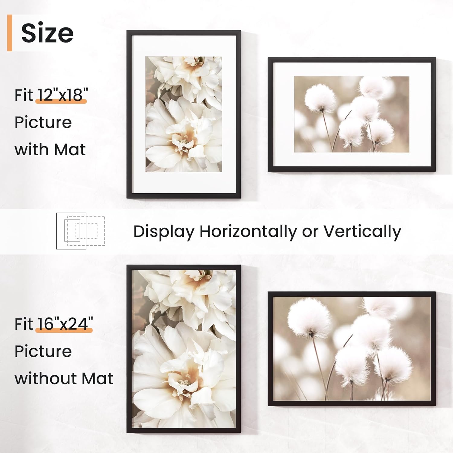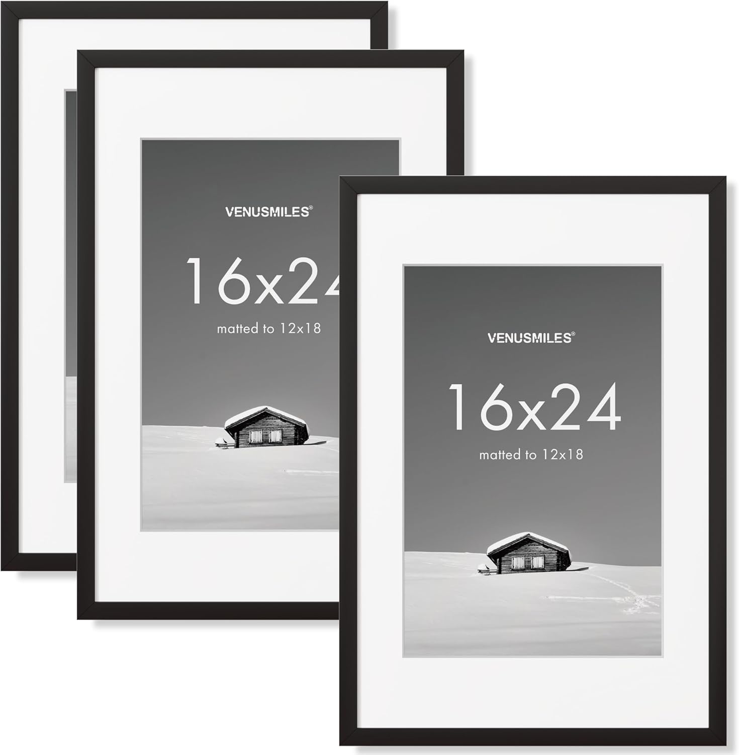16x24 inch Picture Frame, 16x24 Photo Frames with 12x18 Removable Mat - High Definition Plexiglass - Vertical and Horizontal Display - Wall Hanging Poster Frame - Black, 3 Pack
