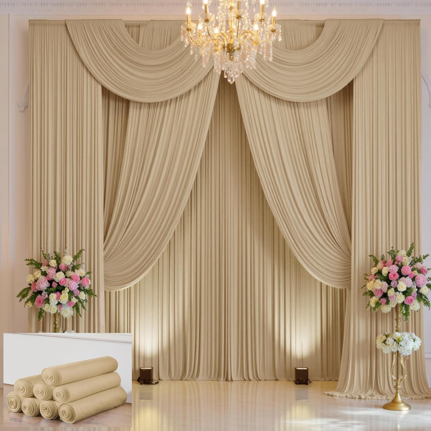 40×12 ft Wrinkle Free Beige Backdrop Curtain for Weddings Parties, 8 Panels 12ft Silky Polyester Wedding Drapes Backdrop Photo Back Drop Cloth for Birthday Baby Shower Photography Backgrounds