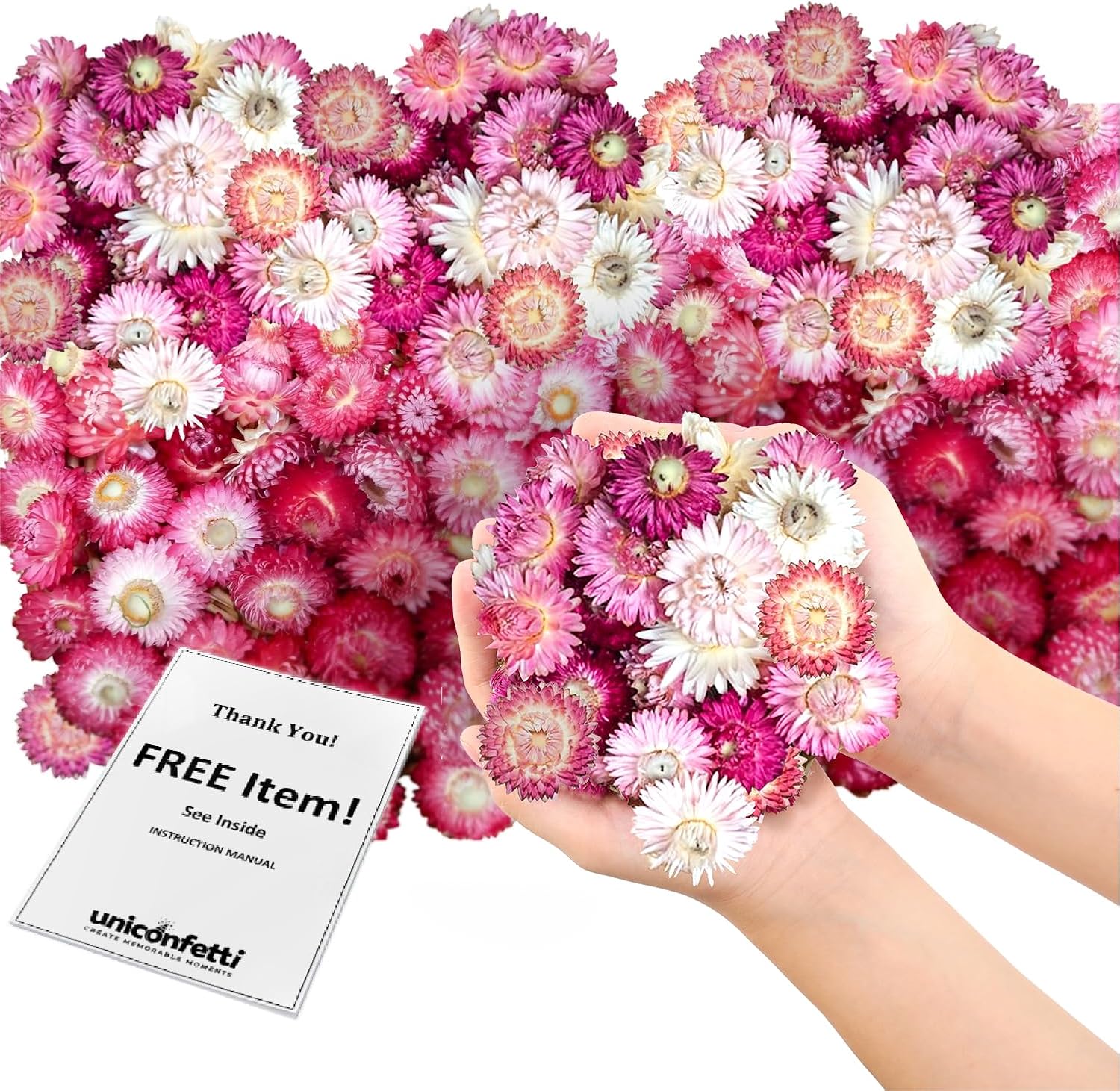 Dried Flower Pink Straw Daisy Biodegradable Confetti - Real Flower Petals for Weddings, Flower Girl Toss, Wedding Send Off Ideas, Party Table Decoration | Boxed - 8oz (0.5lbs)