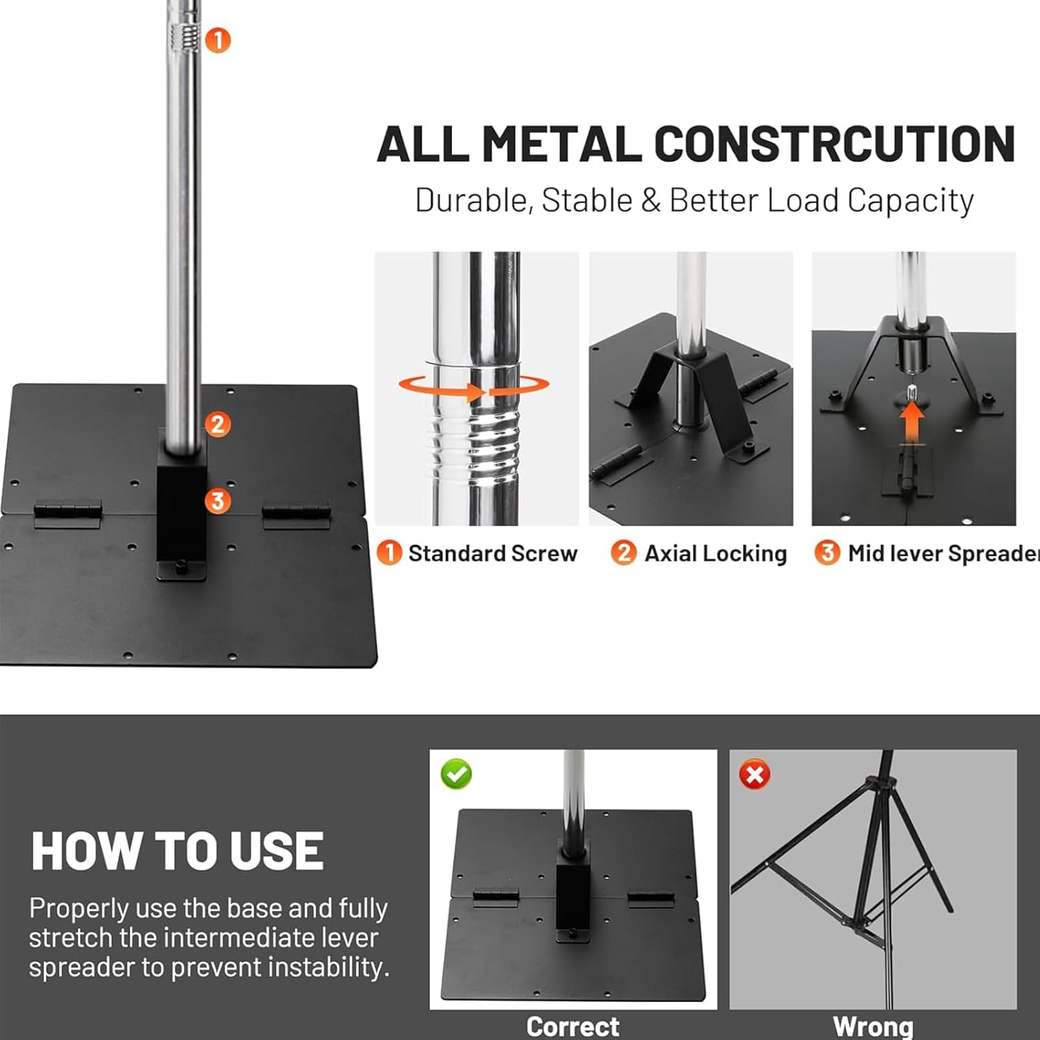 • Sturdy & Stable: Our back drop adjustable stand is made with thickened stainless steel tubes and a robust iron base, built to last and designed for enhanced stability. Besides, this back drop stand won't wobble or bend under heavy loads.