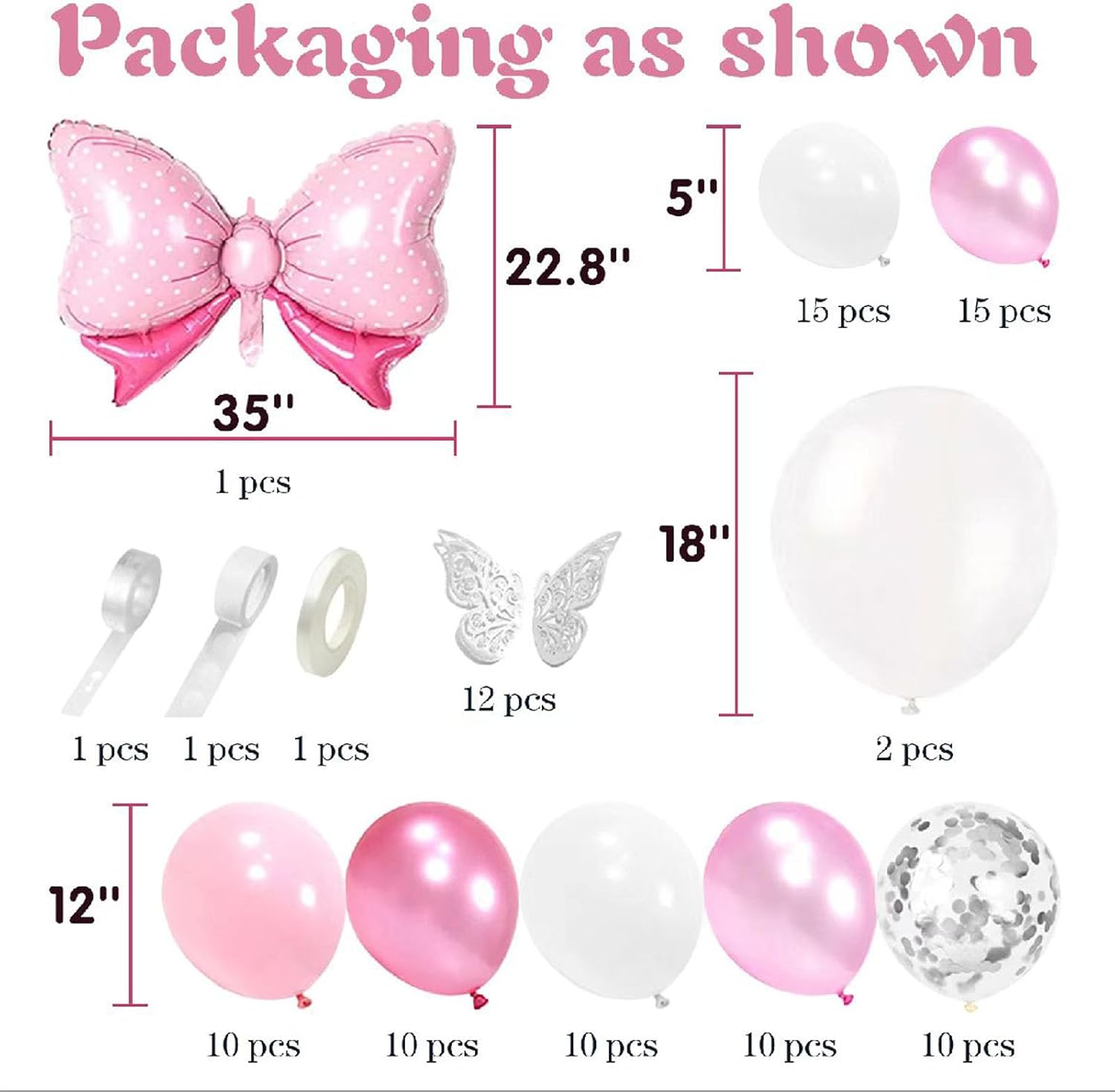 • You will receive 3 pcs pink heart-shaped balloons with a diameter of 18 inches, 1pcs 36-inch pink bow balloon,1 roll of ribbon, and 1 straw. Heart balloons and pink bow ballooncan create a romantic and joyful atmosphere for you, allowing you and your loved ones to share the most unforgettable moments together.