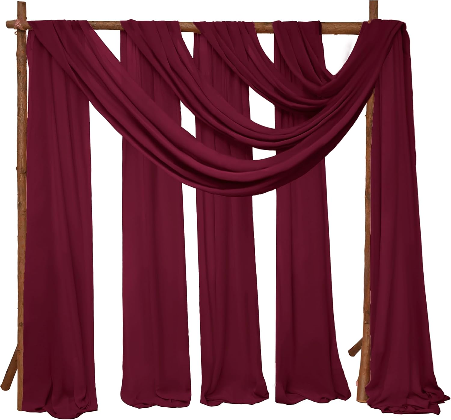 8 Panels Wedding Arch Draping Fabric 28" x20Ft Wedding Arch Drapes Chiffon Fabric Drape Sheer Backdrop Curtain for Weddings Party Swag Ceremony Birthday Arbor Drapery Reception Ceiling Décor(Burgundy)