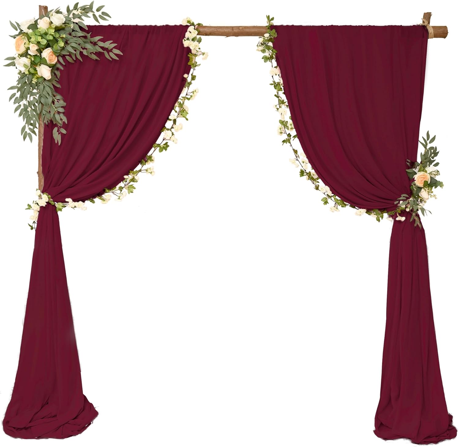 6 Panels Burgundy Wedding Arch Drapery 28" x20Ft Wedding Arch Draping Fabric Chiffon Fabric Drape Sheer Backdrop Curtain for Weddings Party Swag Ceremony Birthday Arbor Drapery Reception Ceiling Décor