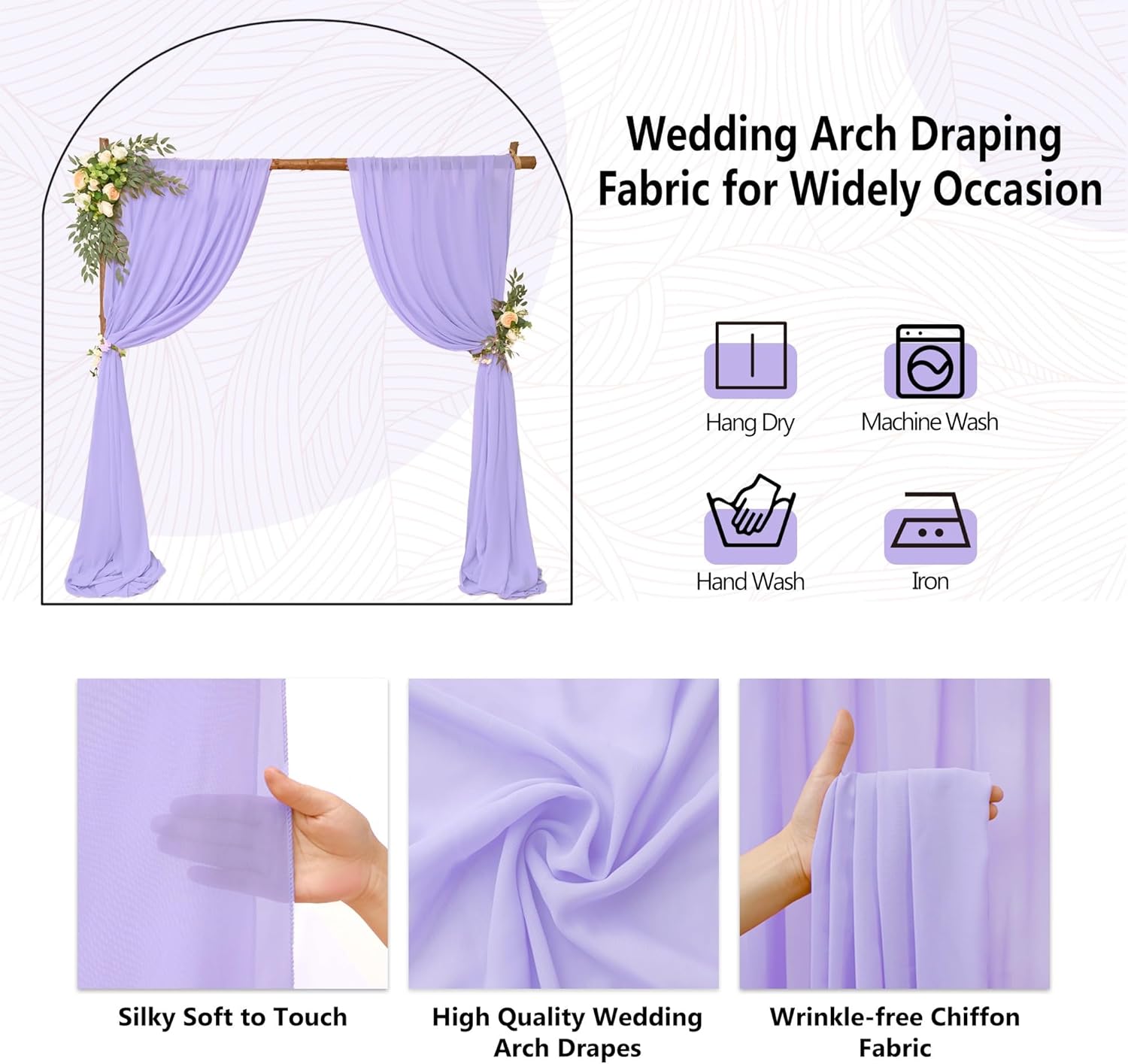 8 Panels Wedding Arch Draping Fabric 28" x 20Ft Wedding Arch Drapes Chiffon Fabric Drape Sheer Backdrop Curtain for Weddings Party Ceremony Baby Shower Arbor Drapery Reception Ceiling Decor(Lavender)