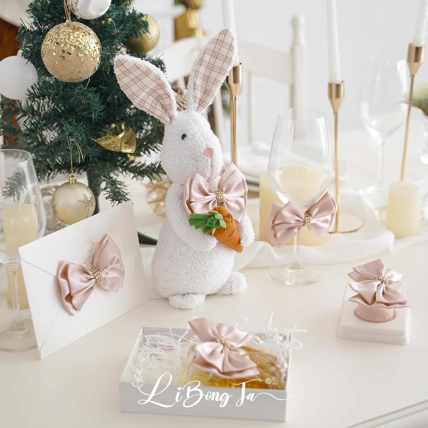 Pink Ribbon Bow 4'' Premade Satin Bows, Pink Gift Bows with Rhinestone, Rose Gold Bow for Presents, Greeting Cards, Treat Bags, Wine Bottle, Valentines Bows for Gift Wrapping-12 Counts