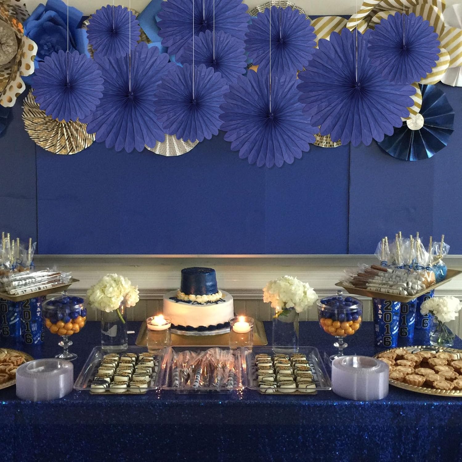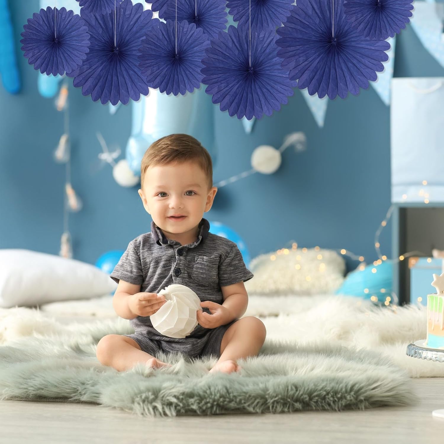20 Pcs Blue Hanging Paper Fan, Hanging Honeycomb Round Paper Fans for Weddings, Birthdays, Christmas, Baby Showers, Classroom, Events Ceiling Party Supplies Decorations