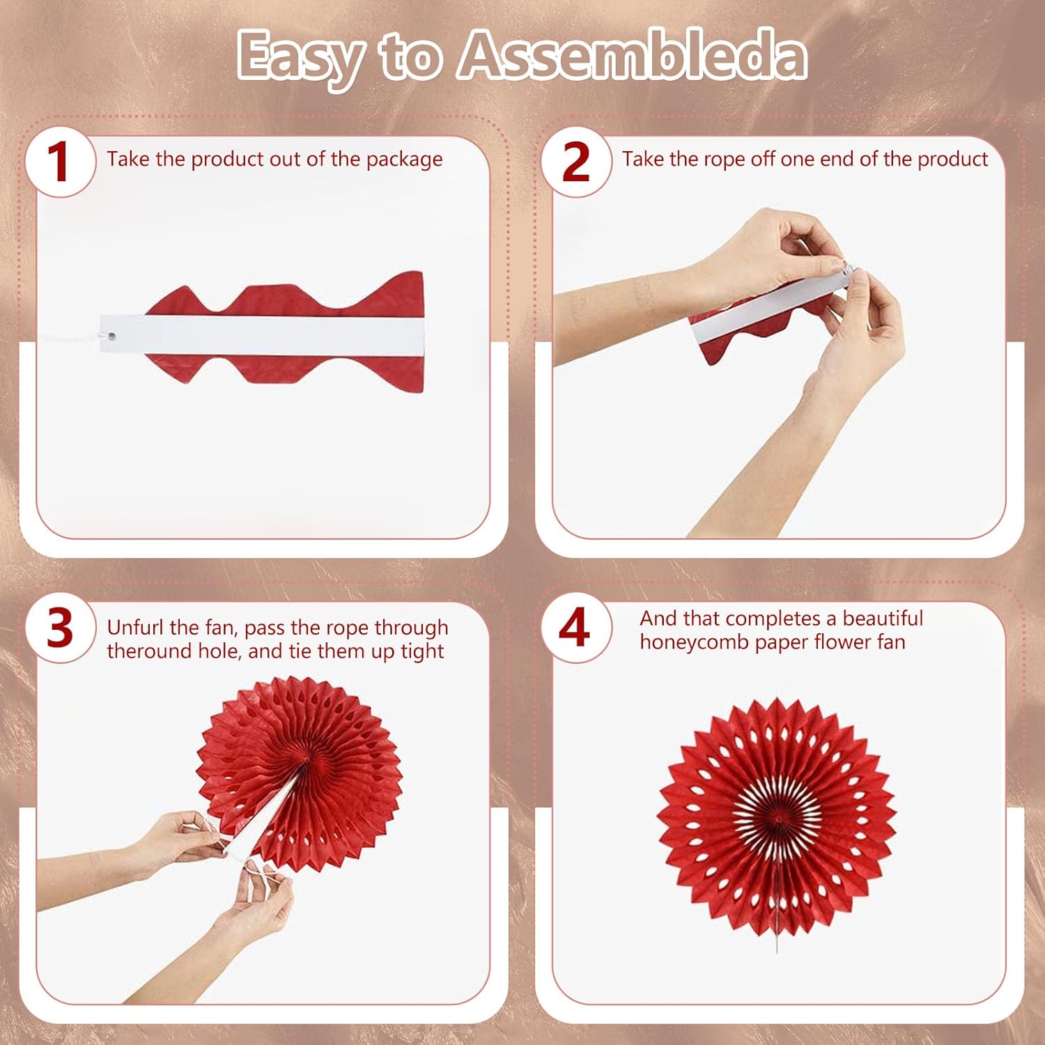 • 【Hanging paper fan set】Paper fan set includes 20 paper fans of different sizes, among which the paper flower fan size is 14 inches * 3, 12 inches * 5, 8 inches * 6, and 6 inches*6.
