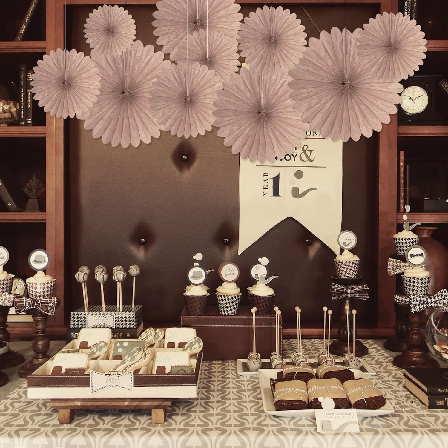 20 Pcs Brown Hanging Paper Fan, Hanging Honeycomb Round Paper Fans for Weddings, Birthdays, Christmas, Baby Showers, Classroom, Events Ceiling Party Supplies Decorations