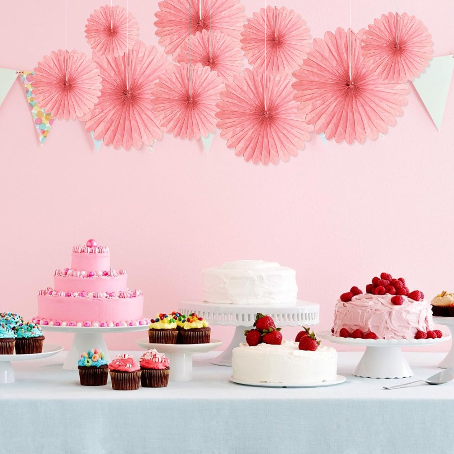 20 Pcs Light Pink Hanging Paper Fan, Hanging Honeycomb Round Paper Fans for Weddings, Birthdays, Christmas, Baby Showers, Classroom, Events Ceiling Party Supplies Decorations