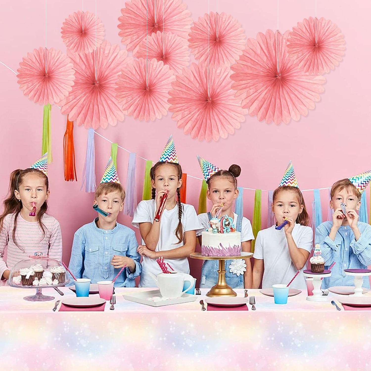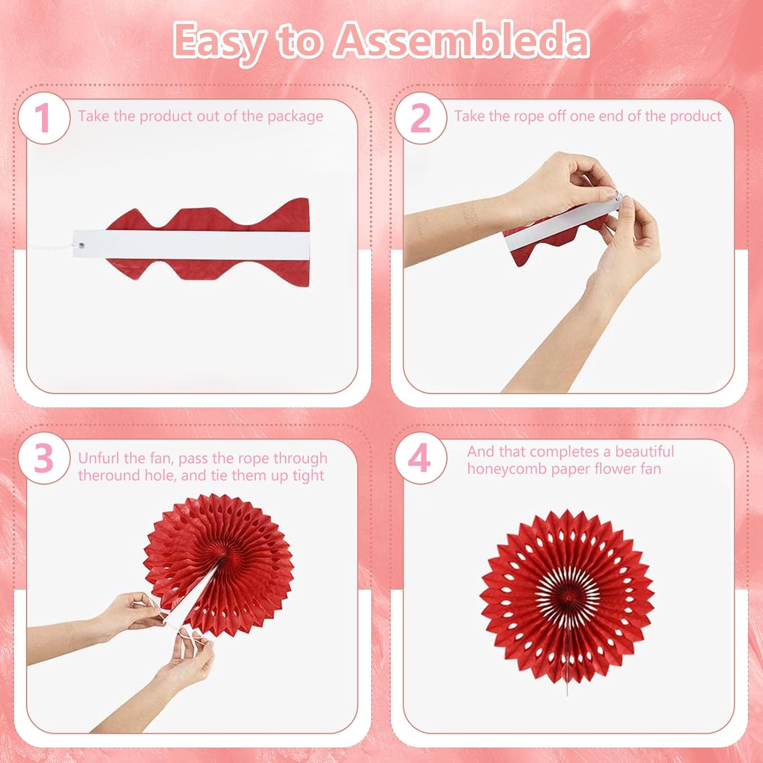 • 【Hanging paper fan set】Paper fan set includes 20 paper fans of different sizes, among which the paper flower fan size is 14 inches * 3, 12 inches * 5, 8 inches * 6, and 6 inches*6.