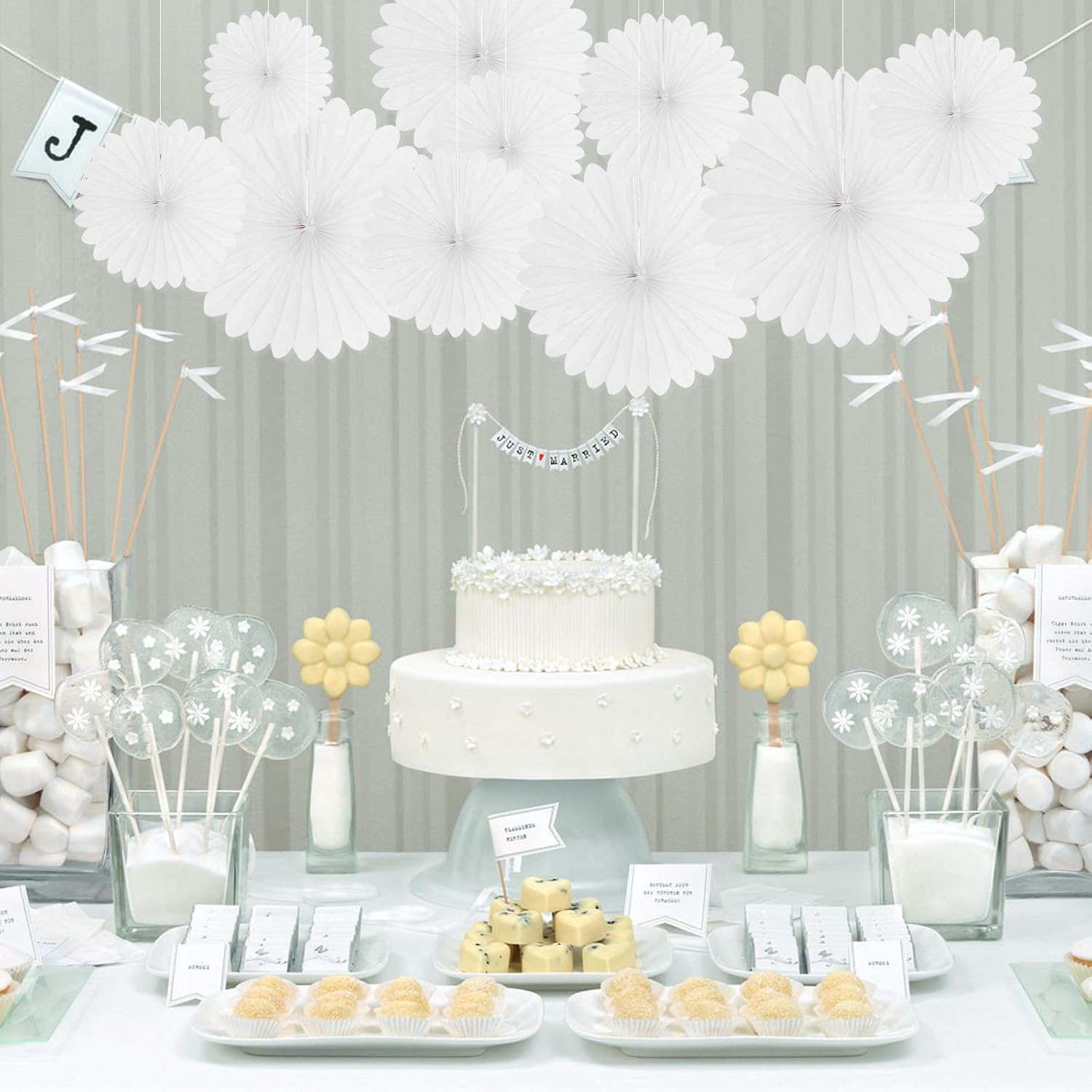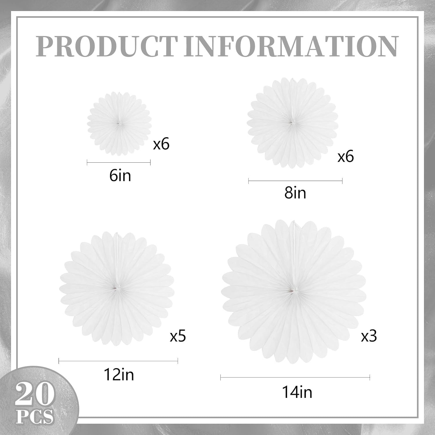 20 Pcs White Hanging Paper Fan, Hanging Honeycomb Round Paper Fans for Weddings, Birthdays, Christmas, Baby Showers, Classroom, Events Ceiling Party Supplies Decorations