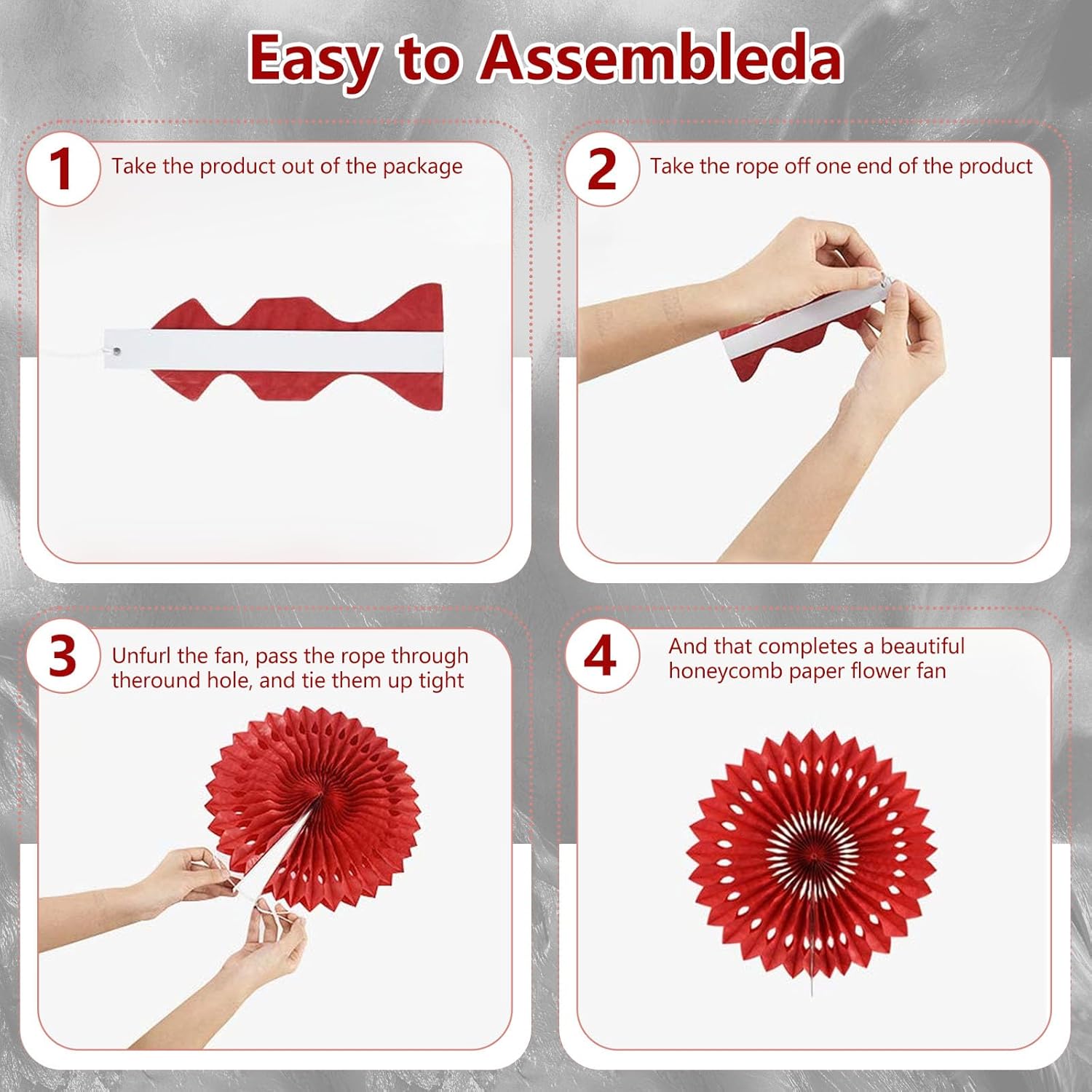 • 【Hanging paper fan set】Paper fan set includes 20 paper fans of different sizes, among which the paper flower fan size is 14 inches * 3, 12 inches * 5, 8 inches * 6, and 6 inches*6.