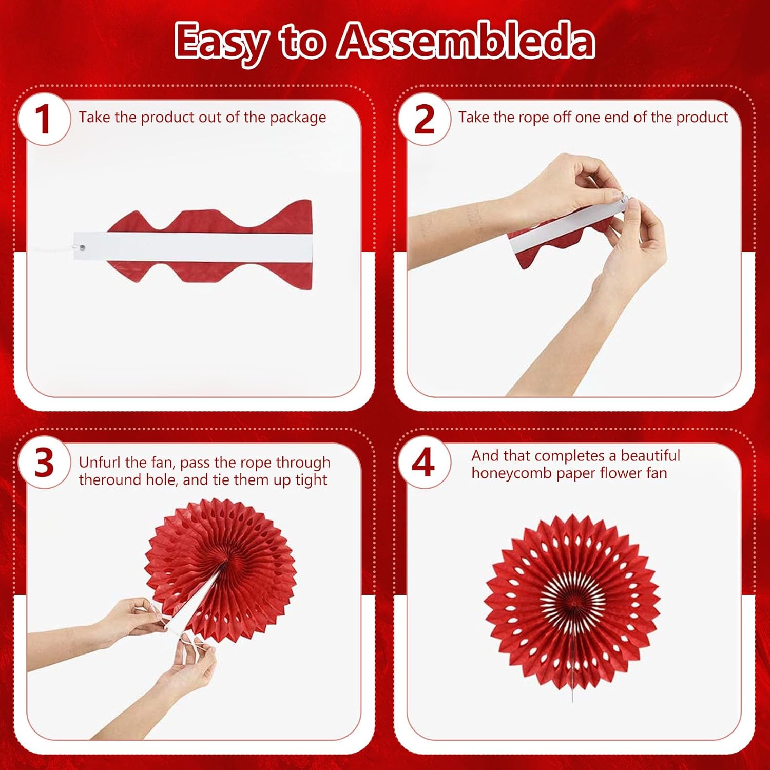 • 【Hanging paper fan set】Paper fan set includes 18 paper fans of different sizes, among which the paper flower fan size is 14 inches * 3, 12 inches * 5, 8 inches * 6, and 6 inches*6.