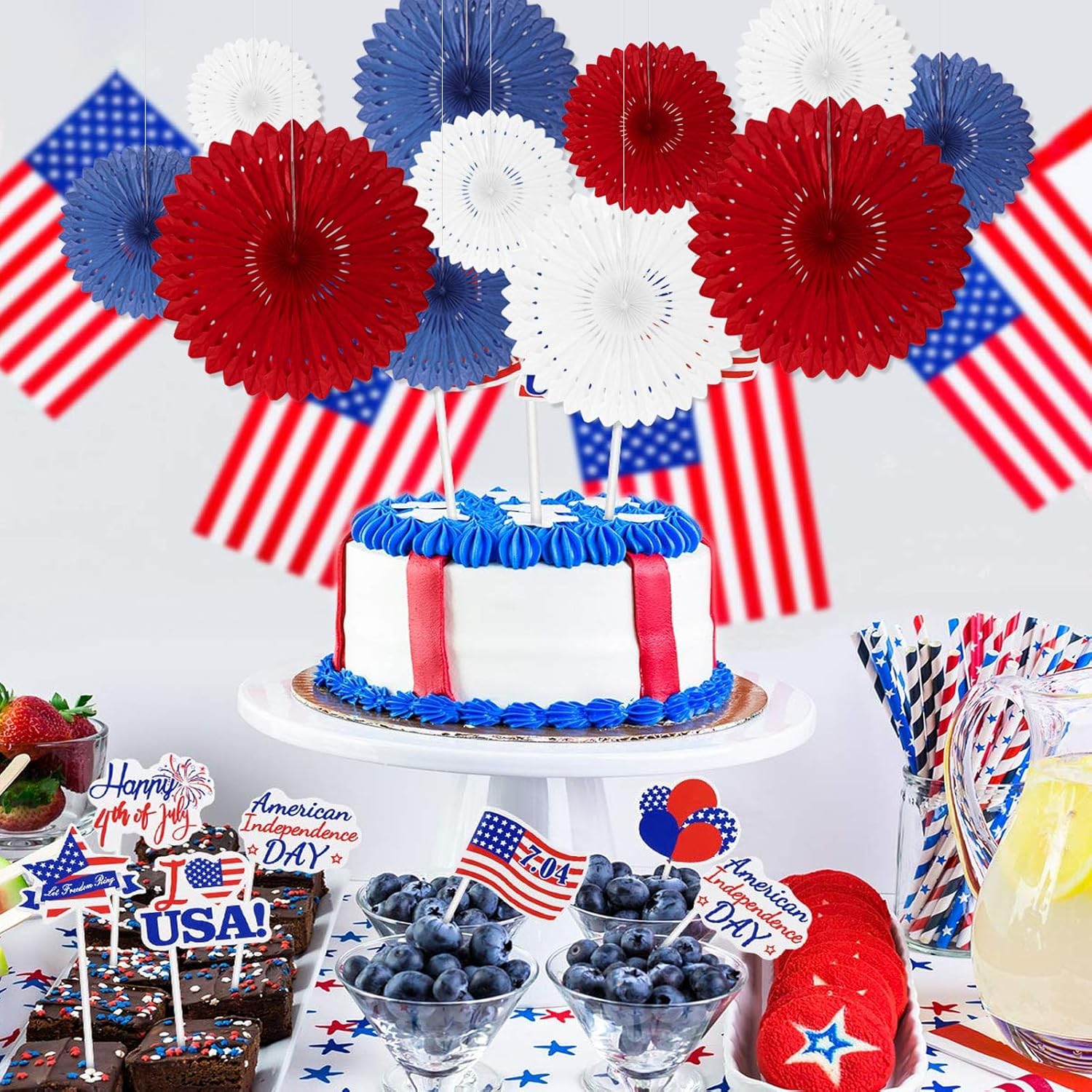 18 Pcs Red White Blue Hanging Paper Fan, Hanging Honeycomb Round Paper Fans for Weddings, Birthdays, Independence Day, Classroom, Events Ceiling Party Supplies Decorations