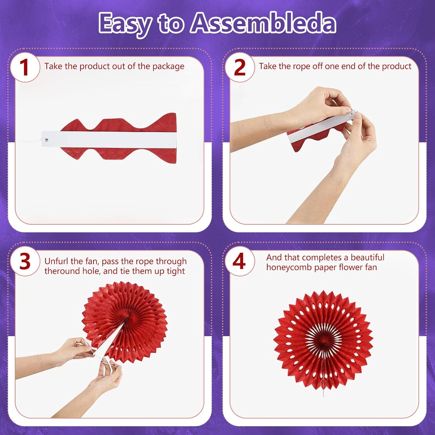 • 【Hanging paper fan set】Paper fan set includes 18 paper fans of different sizes, among which the paper flower fan size is 14 inches * 3, 12 inches * 5, 8 inches * 6, and 6 inches*6.
