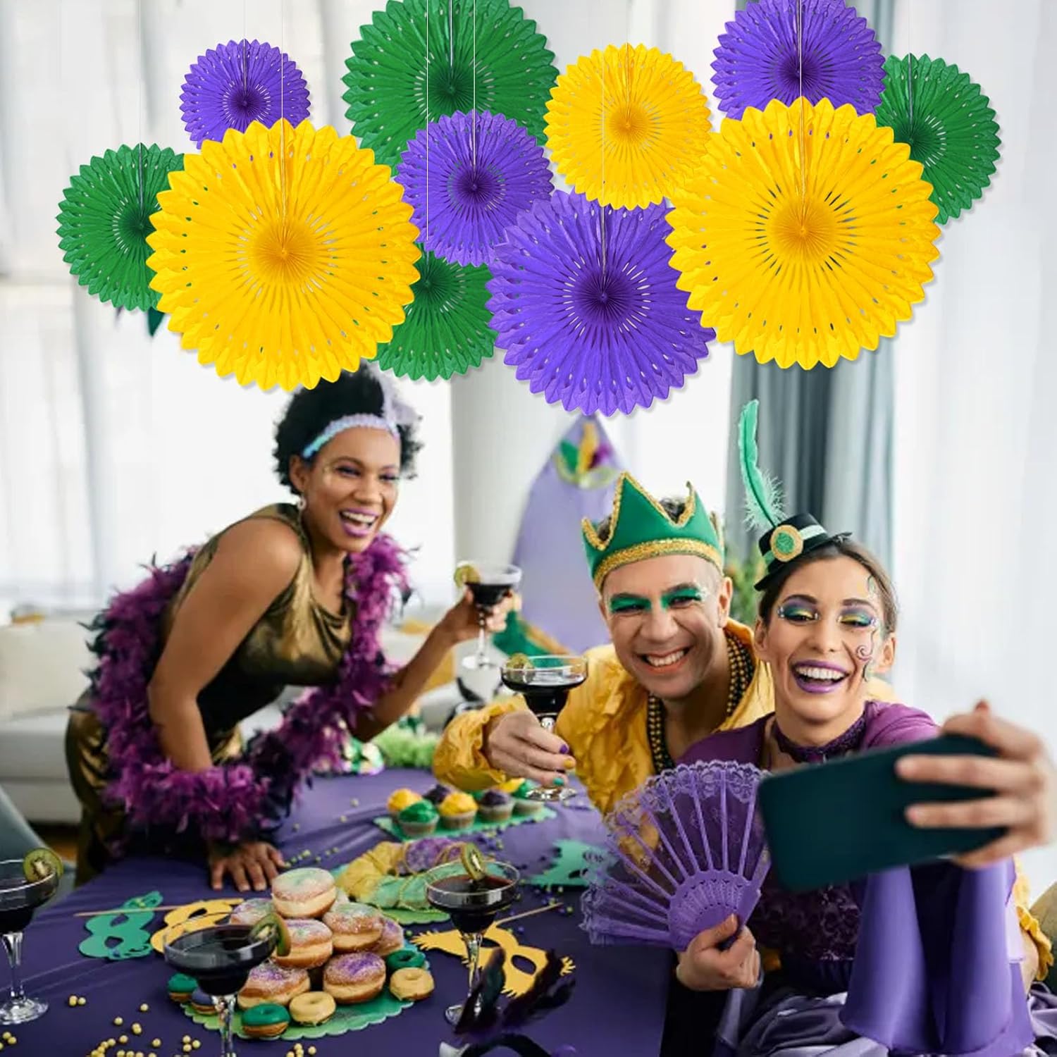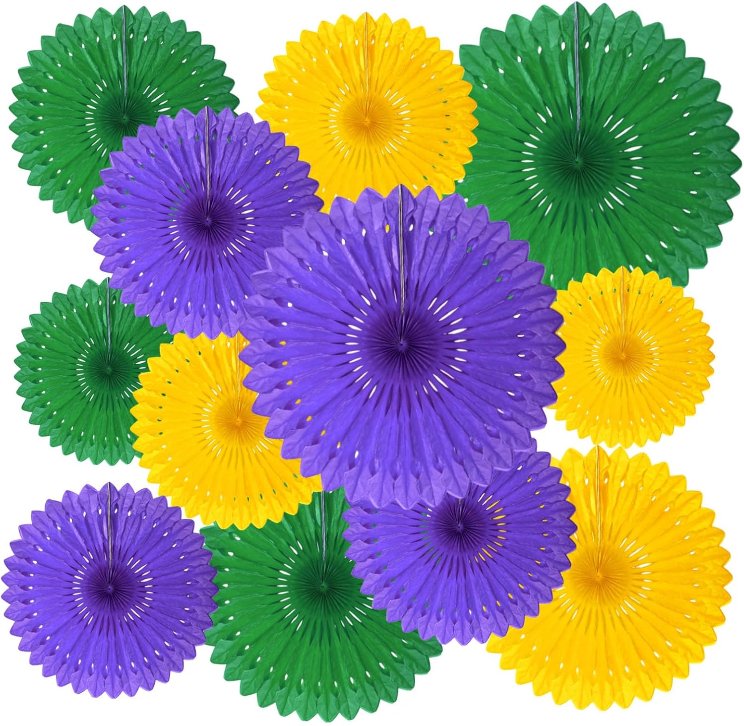18 Pcs Mardi Gras Hanging Paper Fan, Hanging Honeycomb Round Paper Fans for Weddings, Birthdays, Christmas, Baby Showers, Classroom, Events Ceiling Party Supplies Decorations