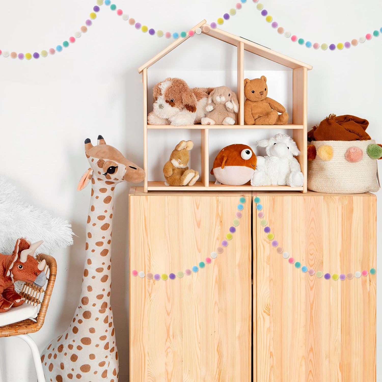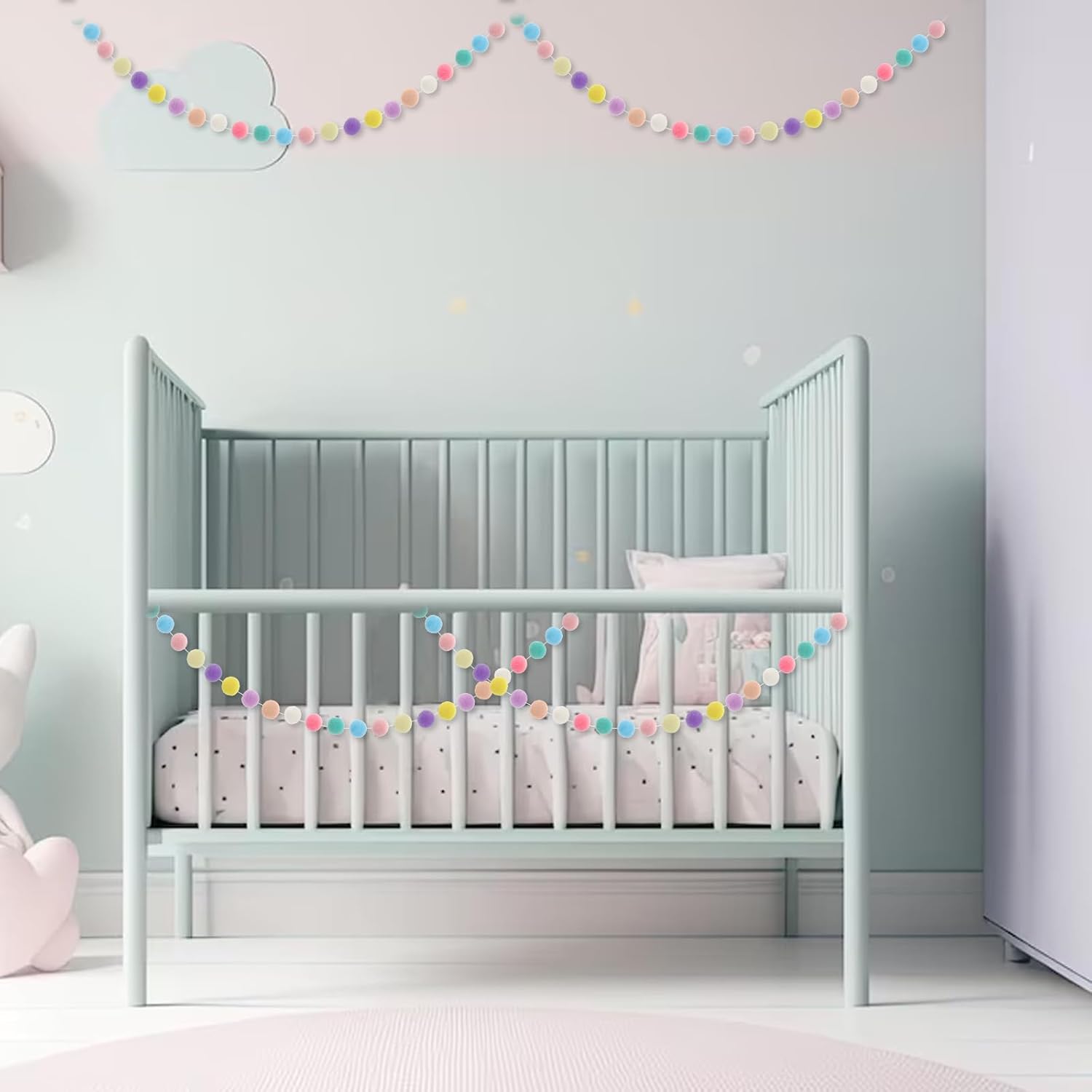 • 【Exquisite Design】The pom pom garland is matched with 10 colors, decorating your space with charming colorful tones, creating a harmonious display effect, adding a warm and sweet feeling to the space.