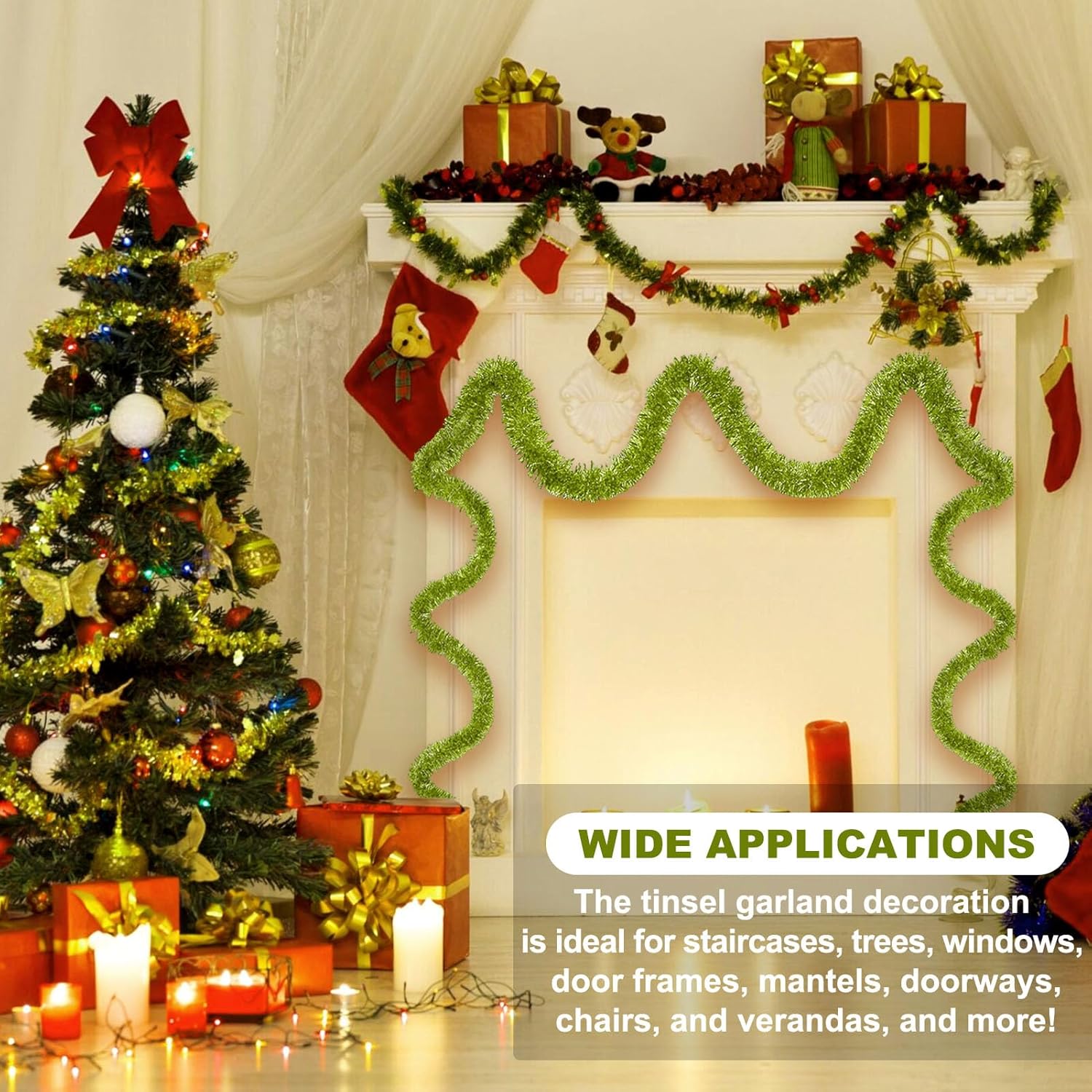 • Easy to Use: You can just hang the tinsel garland ornament on the christmas trees, not need many tools, and if you want to decorate them on the walls or stairs, you can use glue to stick them up, also use scissors to cut to the right length, twist them into various shapes as you like, then hang on to make your home full of joyful feelings