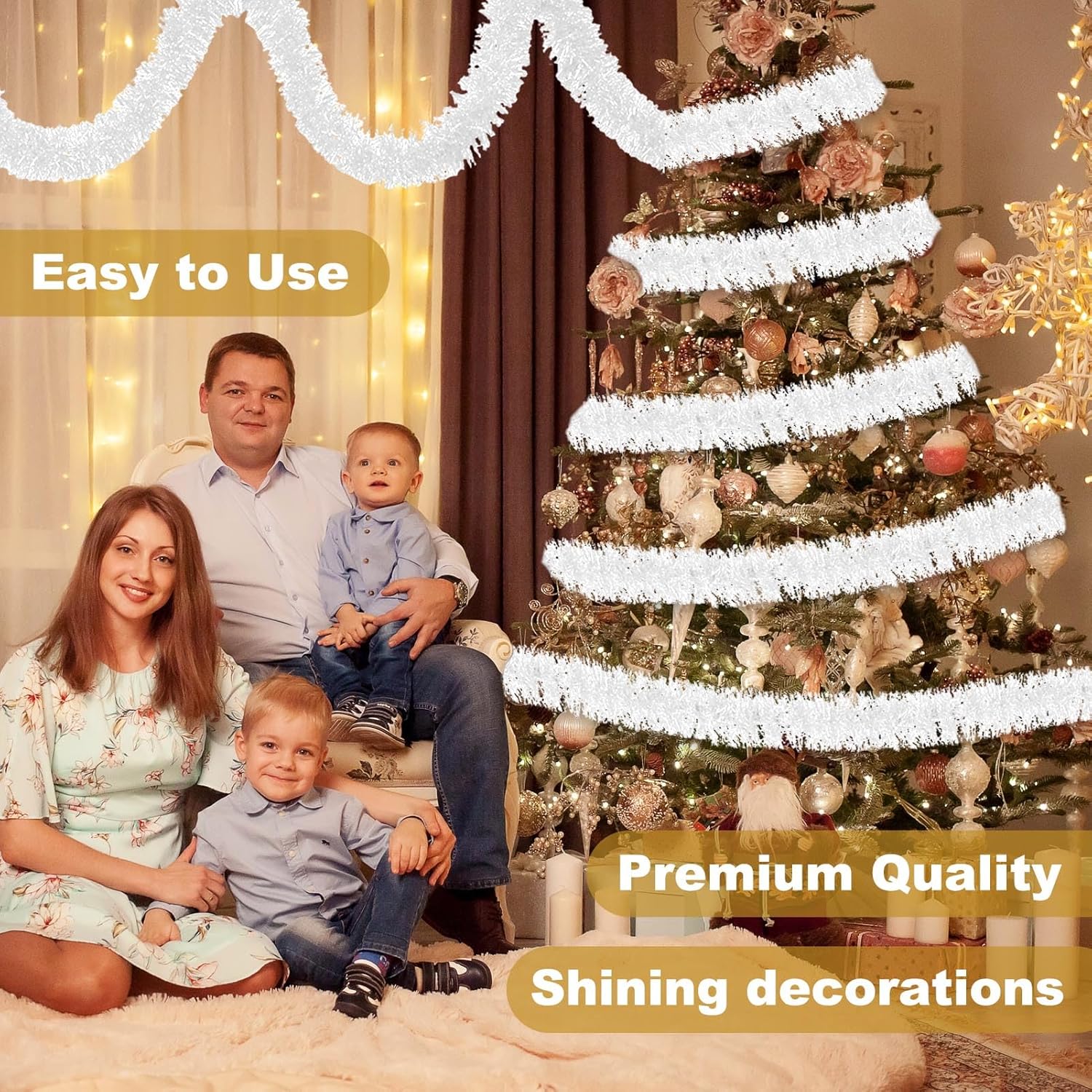 25 Feet Macaron White Christmas Tinsel Garland, Metallic Foil Twist Banner Wall Hanging Tinsel Streamers Backdrop for Parade Floats, Christmas, Mother's Day, Birthday Party Decorations(4in x 25ft)