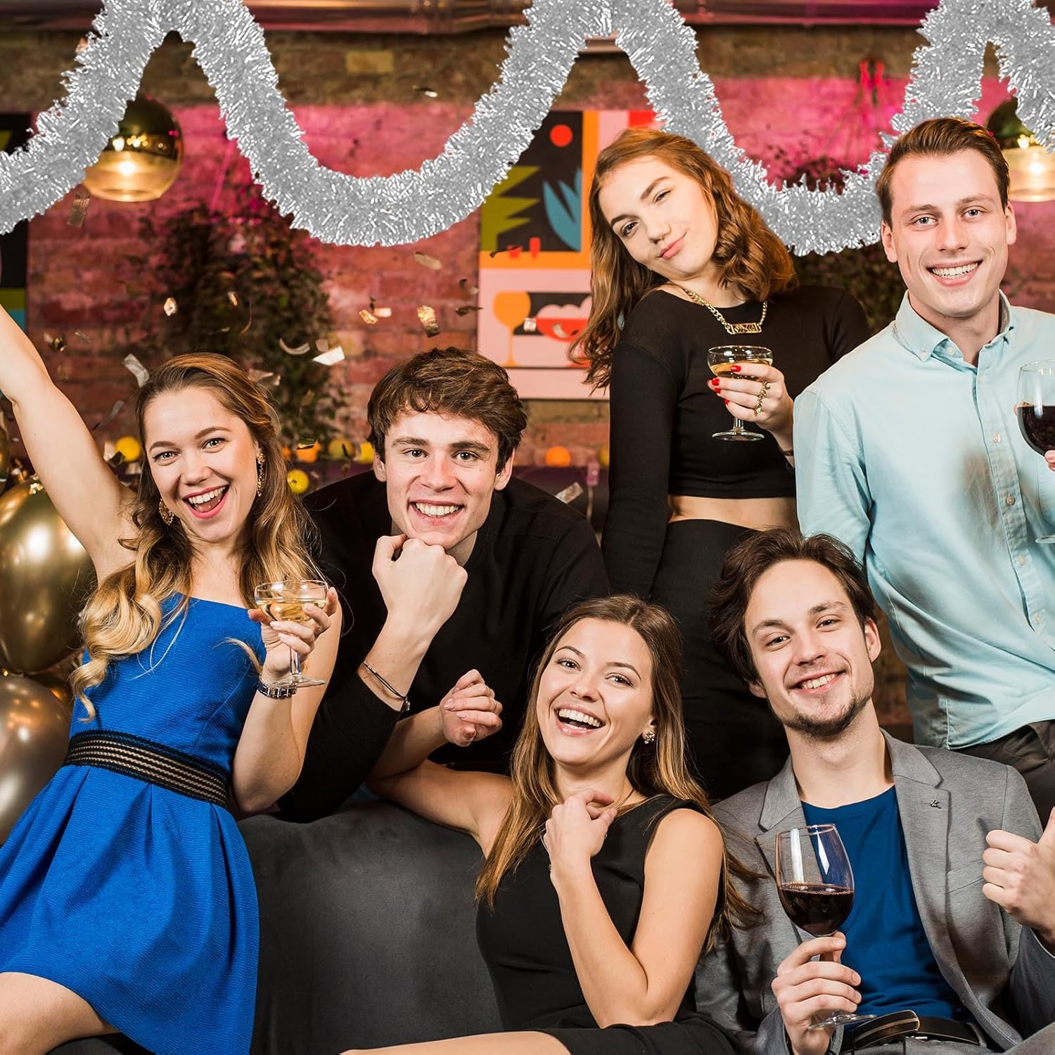 • Add Atmosphere: The metallic garland tinsel reflects light for extra sparkle, create an festive ambience and add more fun and energy to your special party events, you can use it as a background to take photos with your lover, kids, other family members, friends, relatives, classmates to celebrate important days