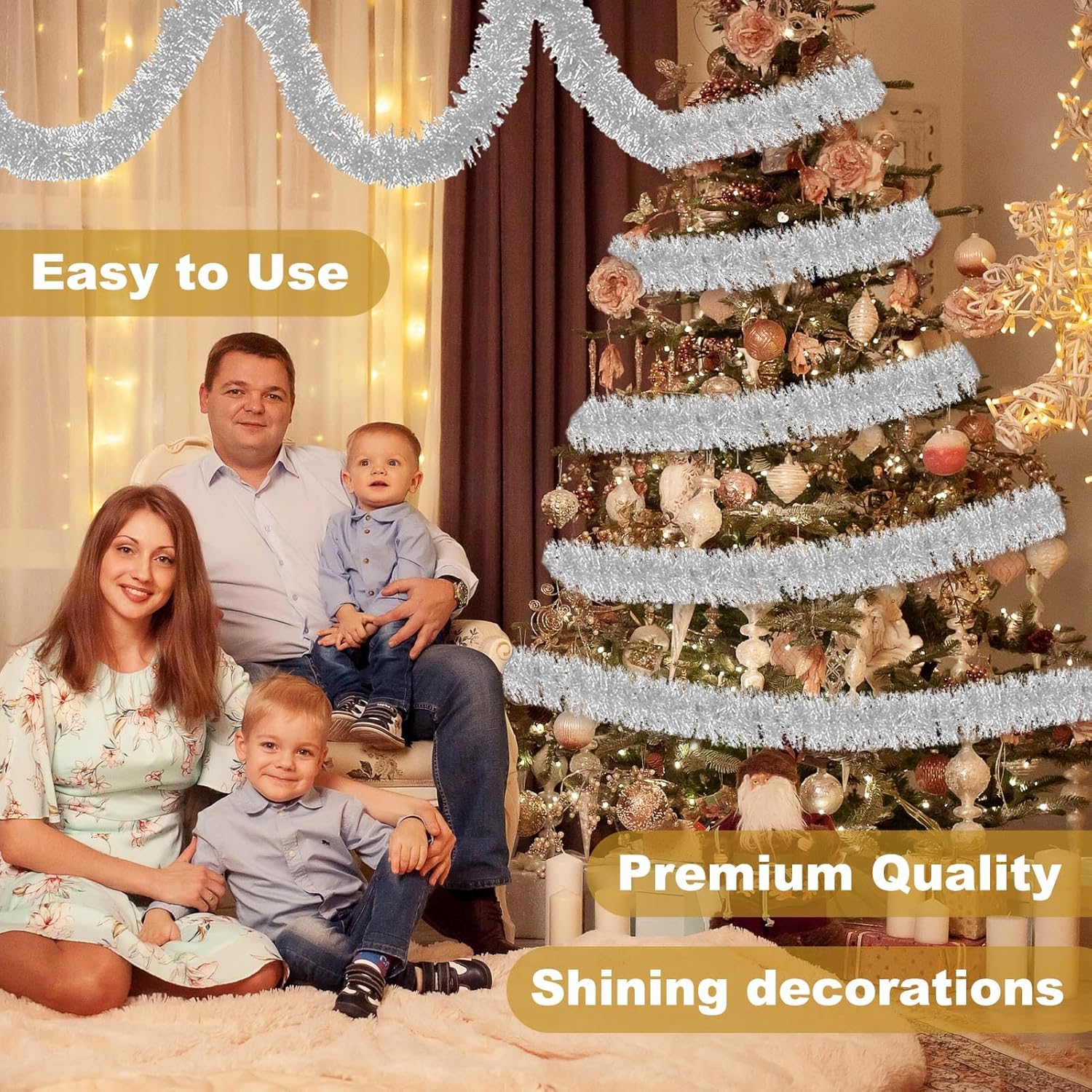 • Easy to Use: You can just hang the tinsel garland ornament on the christmas trees, not need many tools, and if you want to decorate them on the walls or stairs, you can use glue to stick them up, also use scissors to cut to the right length, twist them into various shapes as you like, then hang on to make your home full of joyful feelings