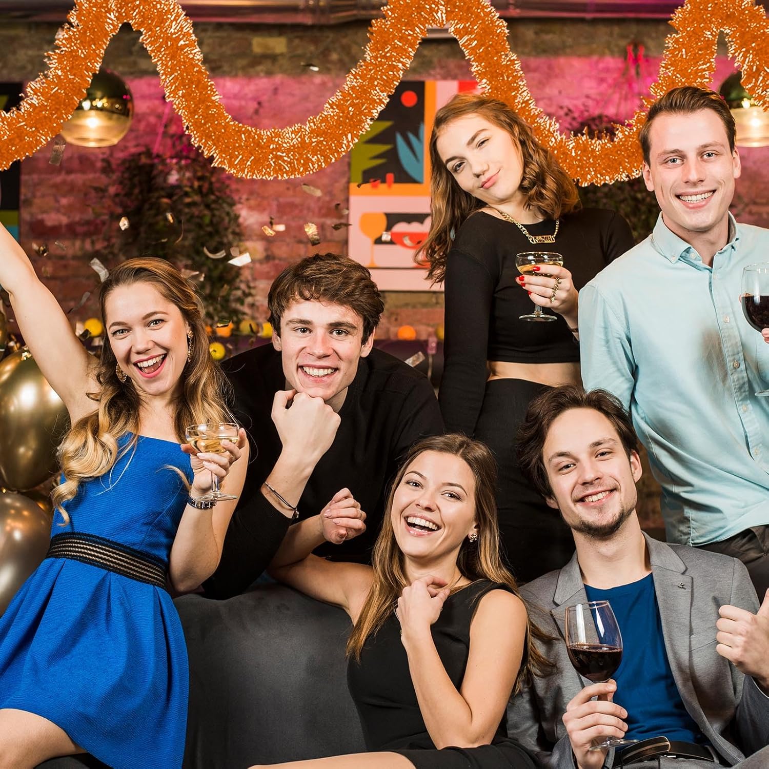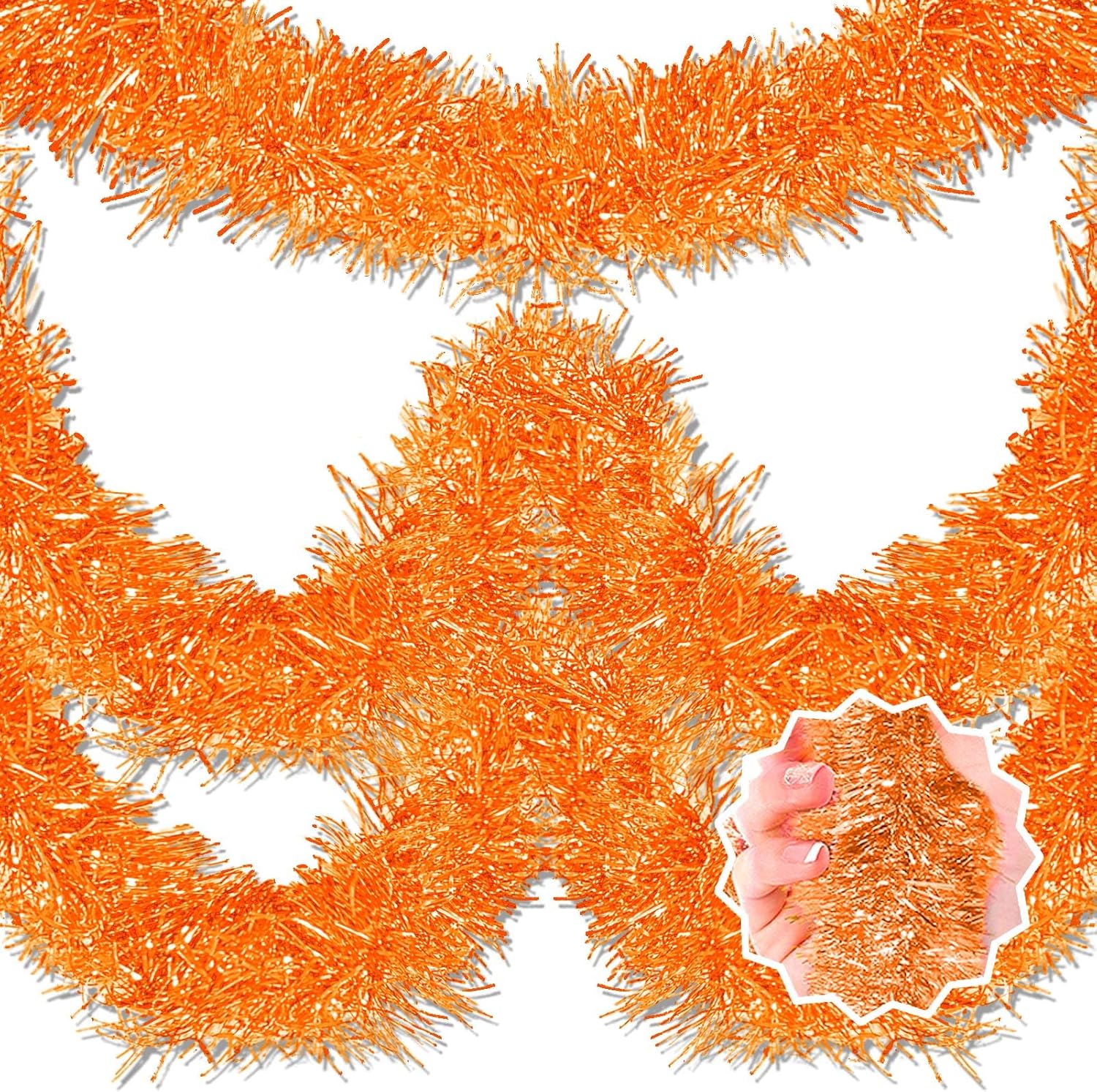 25 Feet Macaron Orange Christmas Tinsel Garland, Metallic Foil Twist Banner Wall Hanging Tinsel Streamers Backdrop for Parade Floats, Christmas, Mother's Day, Birthday Party Decorations(4in x 25ft)