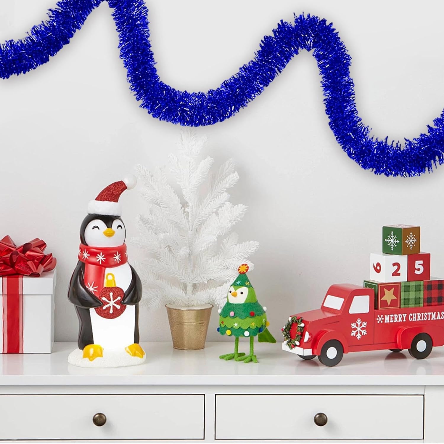 • Quality Material: tree garland Christmas decoration is made from quality PET material that ensures durability and long lasting use; This lightweight yet waterproof tinsel offers you a gorgeous decoration that can provide you with a comfortable decorating experience.