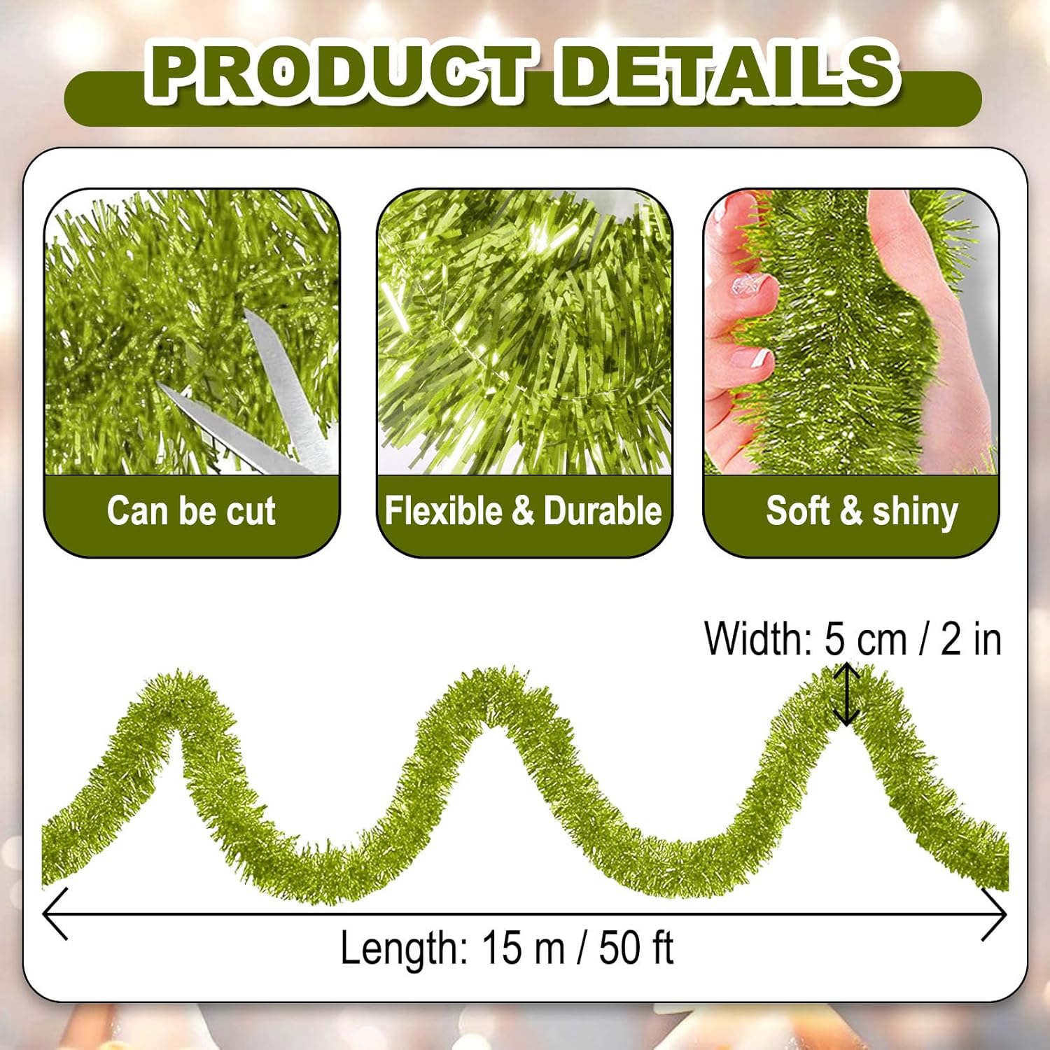 • Quality Material: tree garland Christmas decoration is made from quality PET material that ensures durability and long lasting use; This lightweight yet waterproof tinsel offers you a gorgeous decoration that can provide you with a comfortable decorating experience.