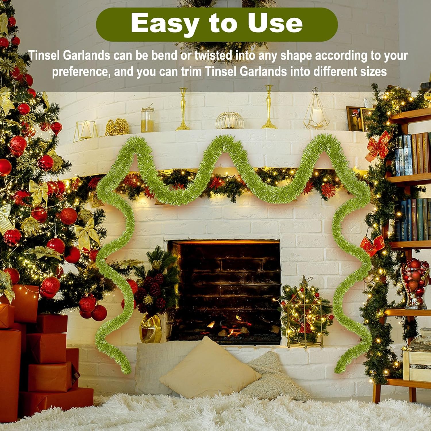 • Applicable Occasions: with exquisite workmanship, these glitter tinsel twist garlands can be hung on your walls, trees, or others; So you can use them to decorate your photo frames, garlands, gift wrapping, decorating tables, Christmas trees, home stairs, and more. This shiny tinsel Foil Fringes garlands is also Perfect for parade floats, as shiny tassel banner, use to run along the top of a backdrop or anywhere you want to add shimmer.