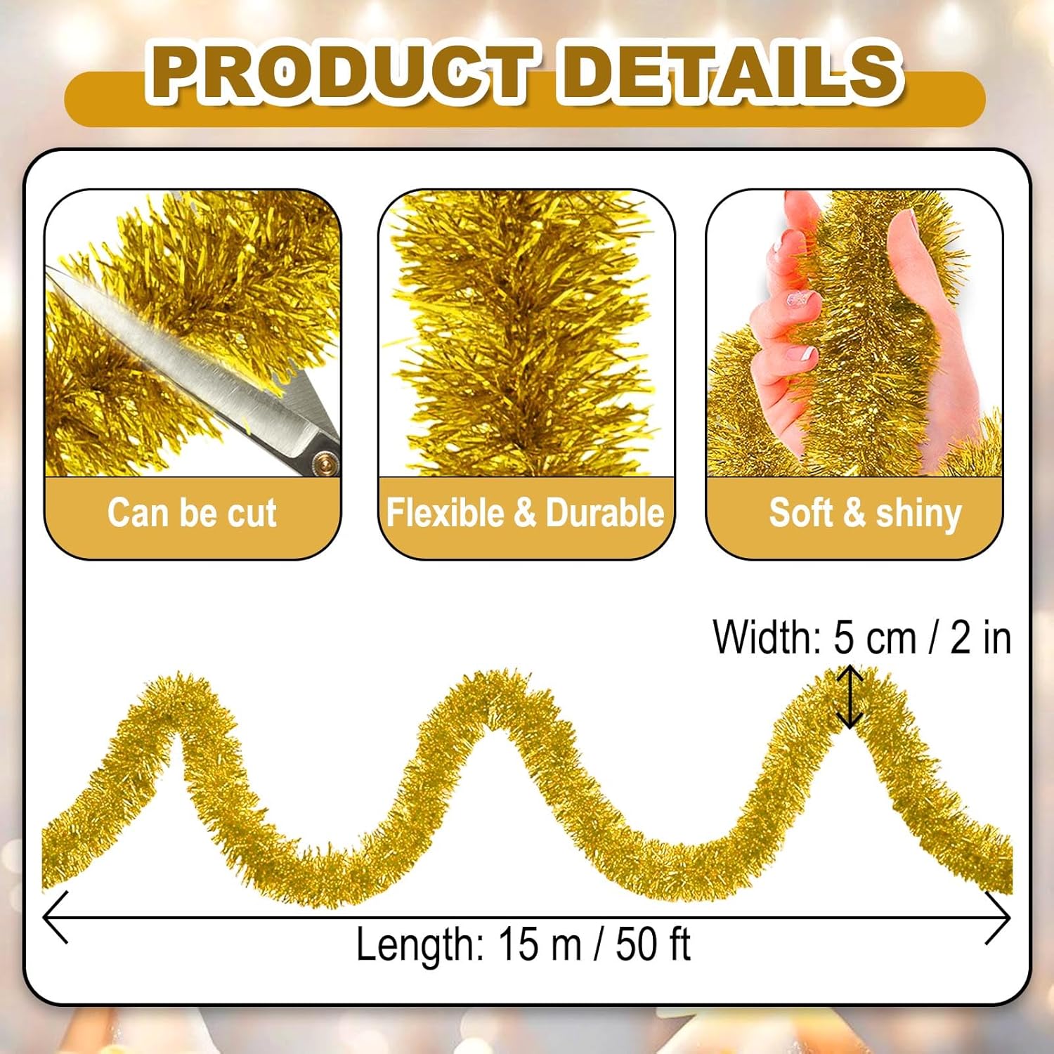 • Quality Material: tree garland Christmas decoration is made from quality PET material that ensures durability and long lasting use; This lightweight yet waterproof tinsel offers you a gorgeous decoration that can provide you with a comfortable decorating experience.