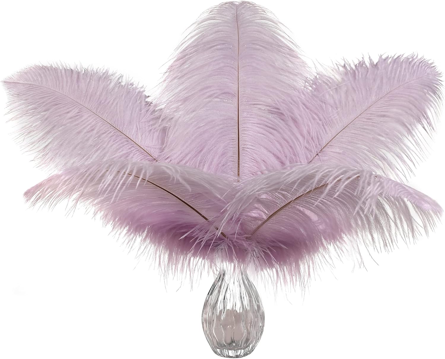 Ballinger Lavender Ostrich Feathers Bulk - 24Pcs 12-14inch Light Purple Feathers for Party Centerpieces, Flower Arrangement and Home Decor