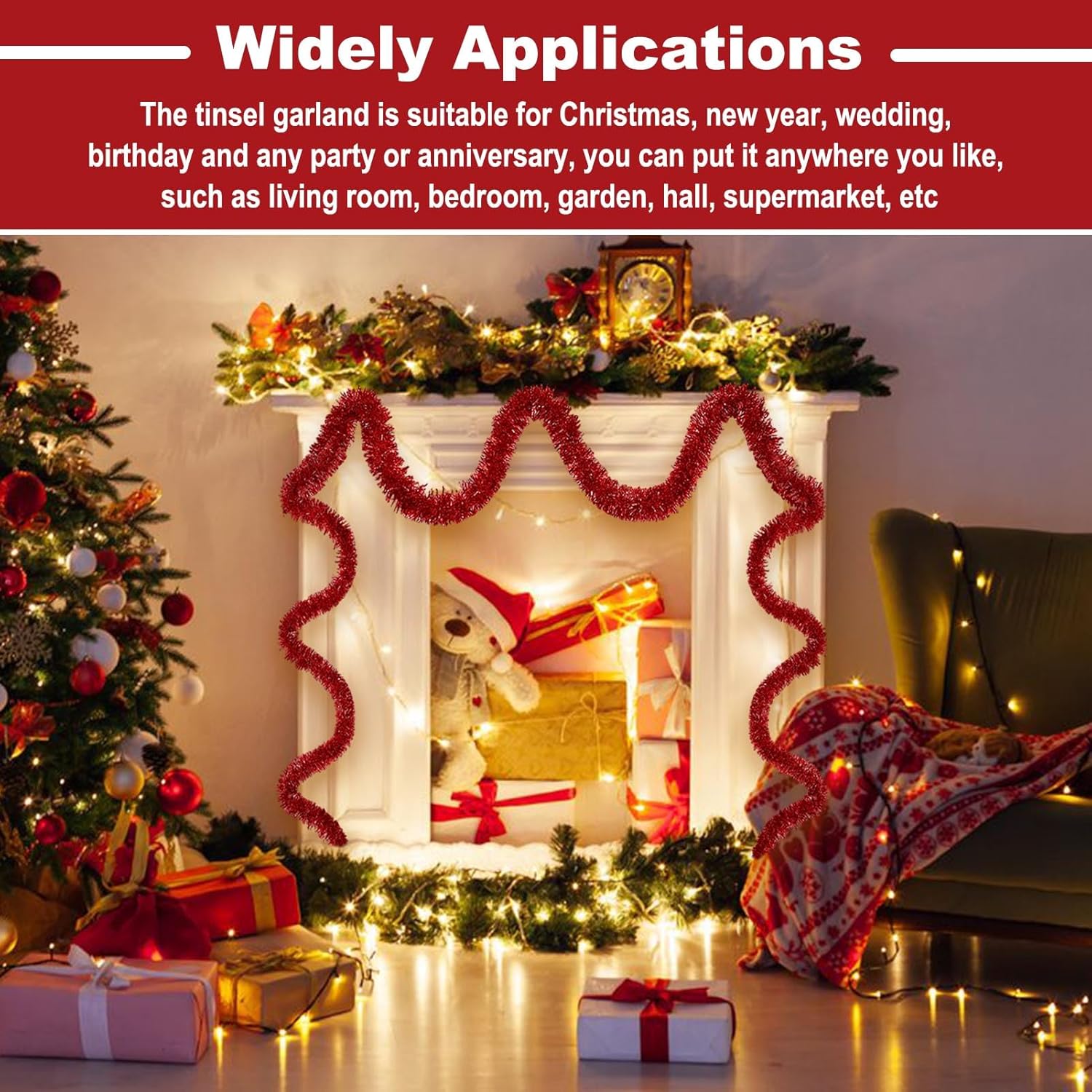• Wide Application: Suitable for all kinds of special days, such as christmas, new year, valentine's day, halloween, festivals, wedding, engagement, bridal baby shower, graduation celebrations. The tinsel garland are perfect decorations for party, home decorations, parade float, garden, christmas tree, christmas wreath, wall, ceiling, door, hedge, stair rail, doorway, window, pole, table and so on