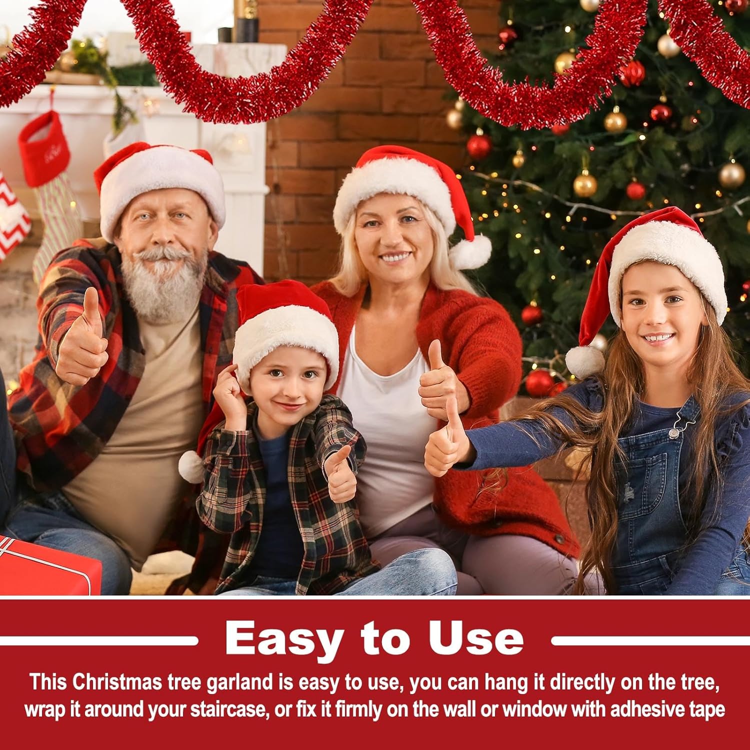 • Easy to Hang: Christmas tinsel garland include a soft, bendable wire inside, and easy to shape as different looks. You can also trim it into different sizes, twist them into various shapes as you like, or with the tape stick it on the wall, window, table, door, rail or any place you like, show the christmas glamour to make your party decoration for the home fun
