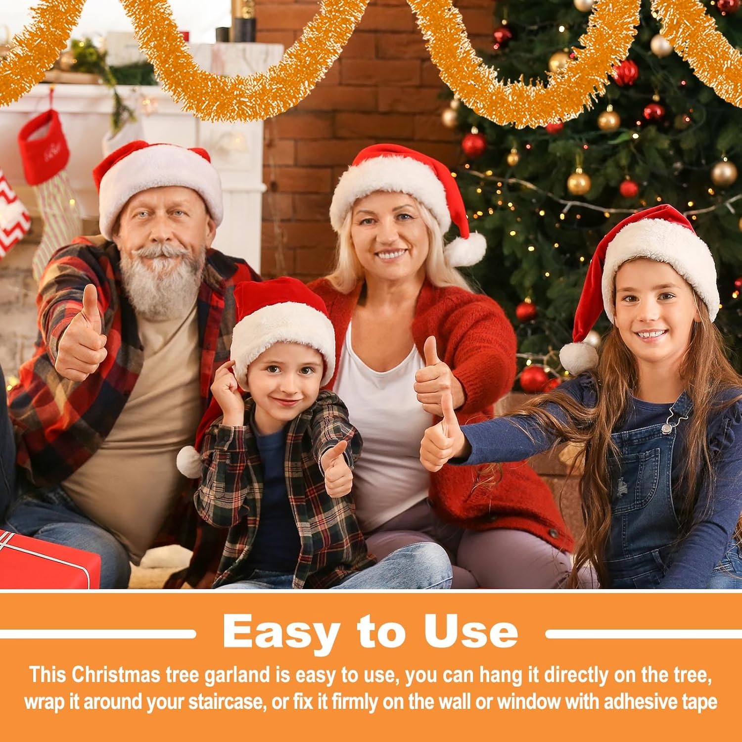 • Add Atmosphere: This garland christmas decorations add a bright and festive feel to your holiday decorations, with bright metallic tinsel reflecting the light and shining brightly, add to the festive atmosphere, bringing you a lot of fun, easy to attract your attention, thus you can have a happy party time with families and friends, classmates to celebrate important days
