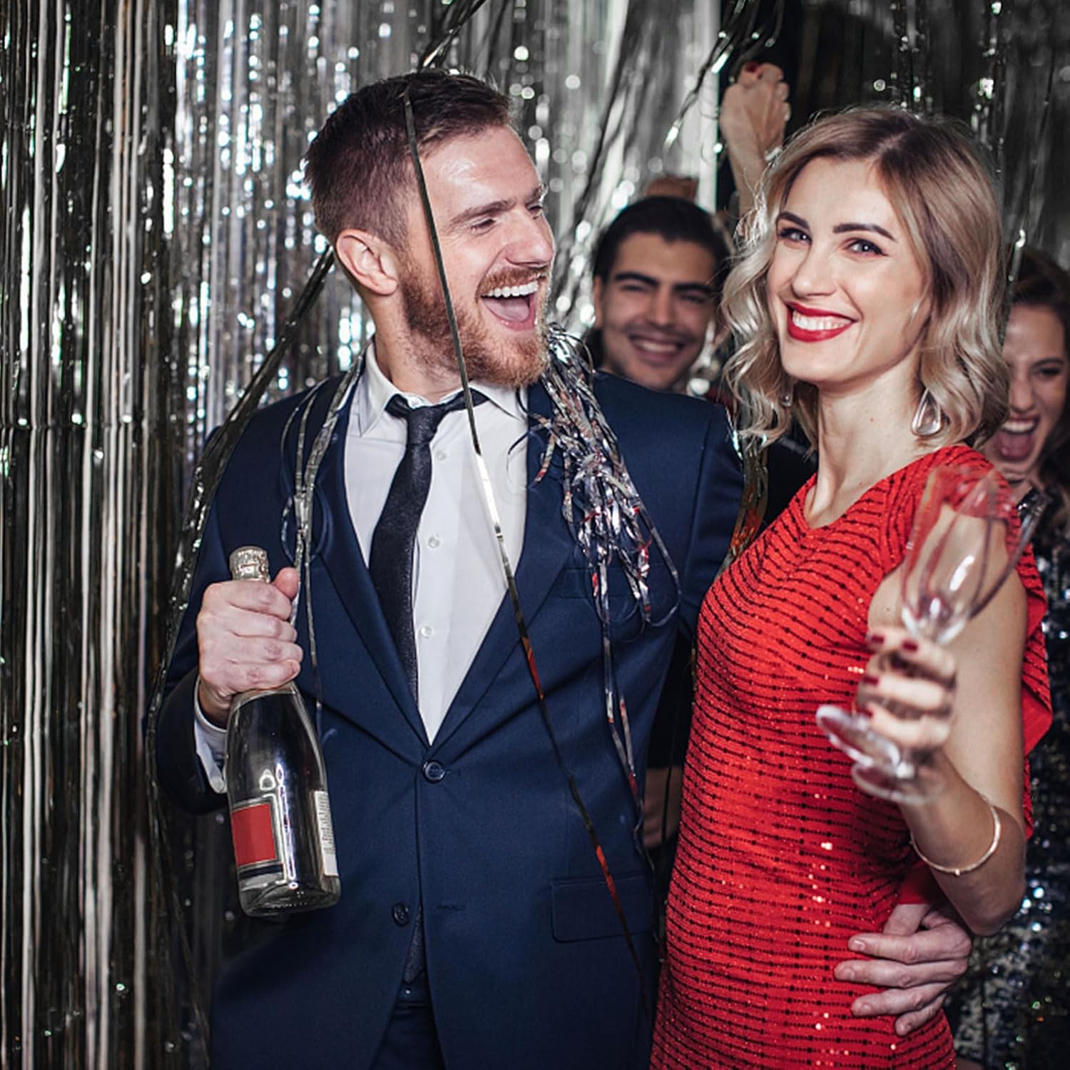 • Material: The metallic tinsel backdrop is made of tinsel with shiny surface, durable material can be reused. Good for adding sparkle as decorations for parties.
