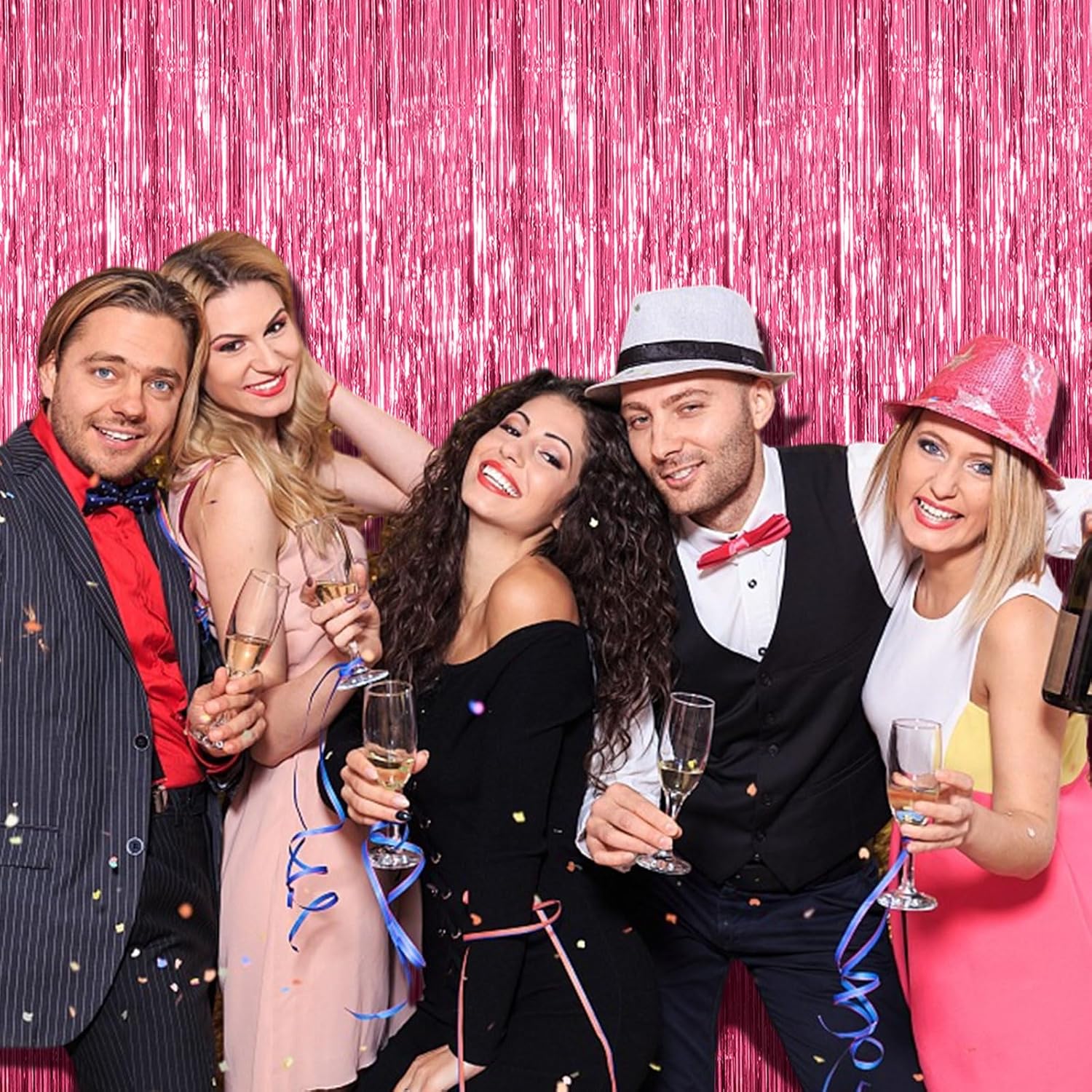 20 Pack Foil Curtain Backdrop Pink Metallic Tinsel Foil Fringe Curtains Photo Booth Props for Birthday Wedding Engagement Baby Shower Bachelorette Christmas Holiday Celebration Party Decorations