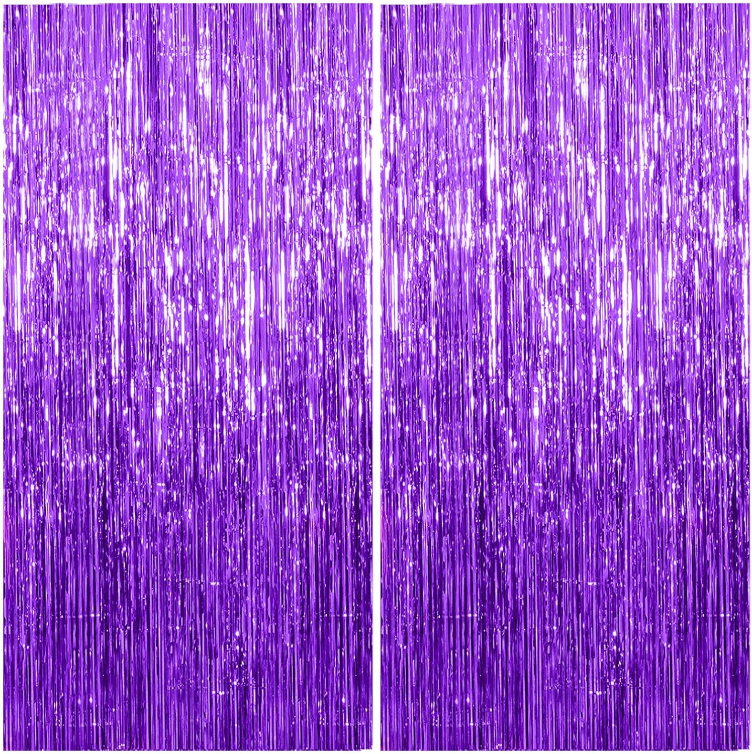 2 Pack Foil Curtain Backdrop Purple Metallic Tinsel Foil Fringe Curtains Photo Booth Props for Birthday Wedding Engagement Baby Shower Bachelorette Christmas Holiday Celebration Party Decorations