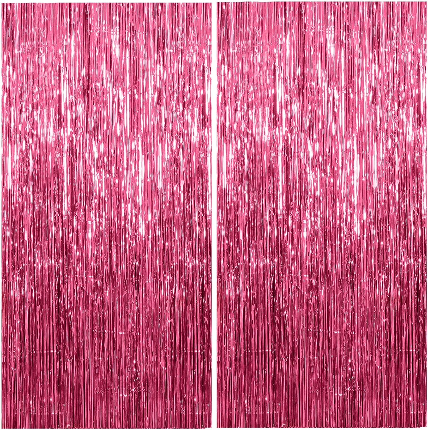 2 Pack Foil Curtain Backdrop Pink Metallic Tinsel Foil Fringe Curtains Photo Booth Props for Birthday Wedding Engagement Baby Shower Bachelorette Christmas Holiday Celebration Party Decorations