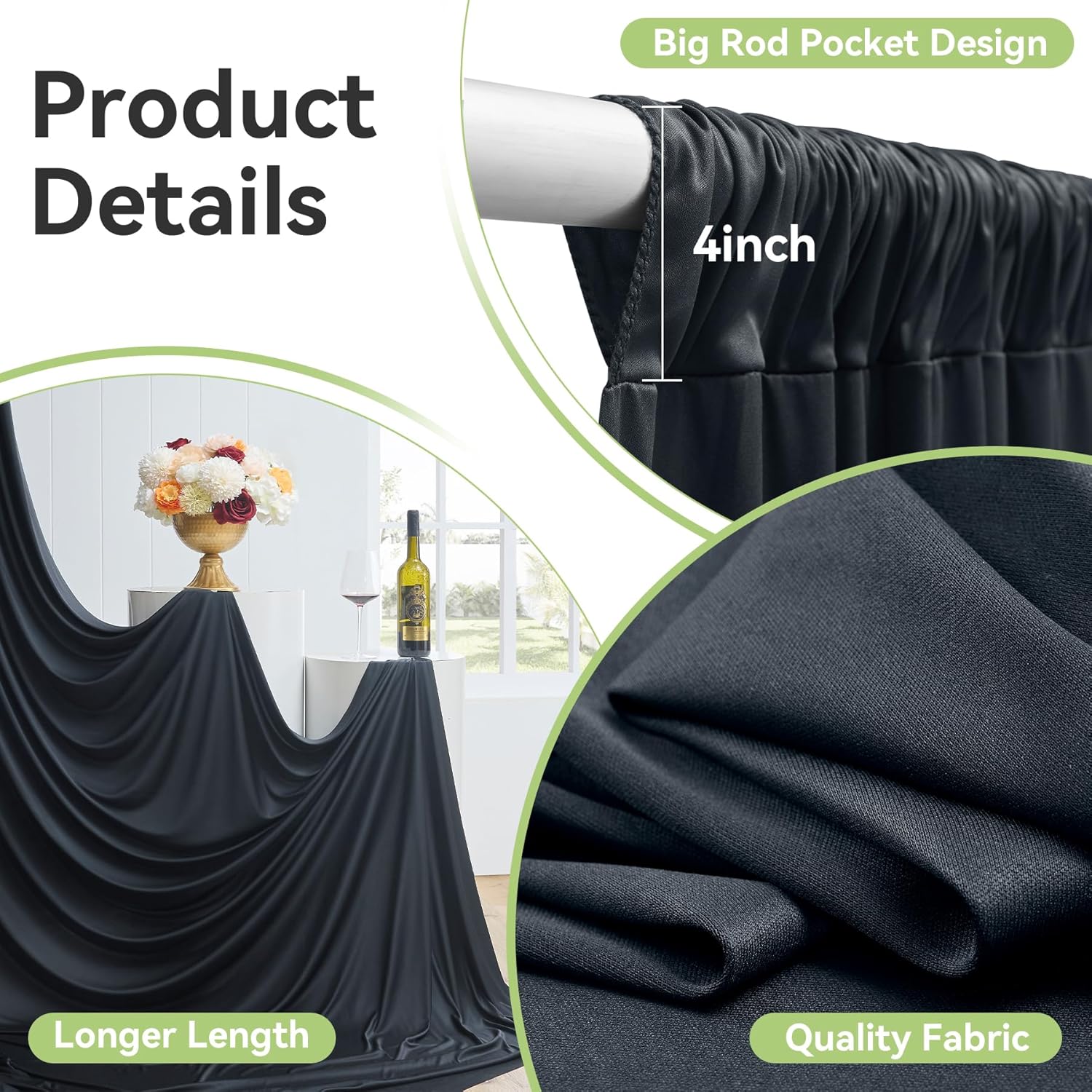 • 12FT Black Bulk Curtain Photo Backdrop 4Inch Rod Pocket Easy for Hanging:The 12ft Black photo background for party background curtain is designed with a 4 inches rod pocket, very easy for hanging nicely without slipping off, suitable for most of backdrop stand. You can tighten or stretch it according to your need.