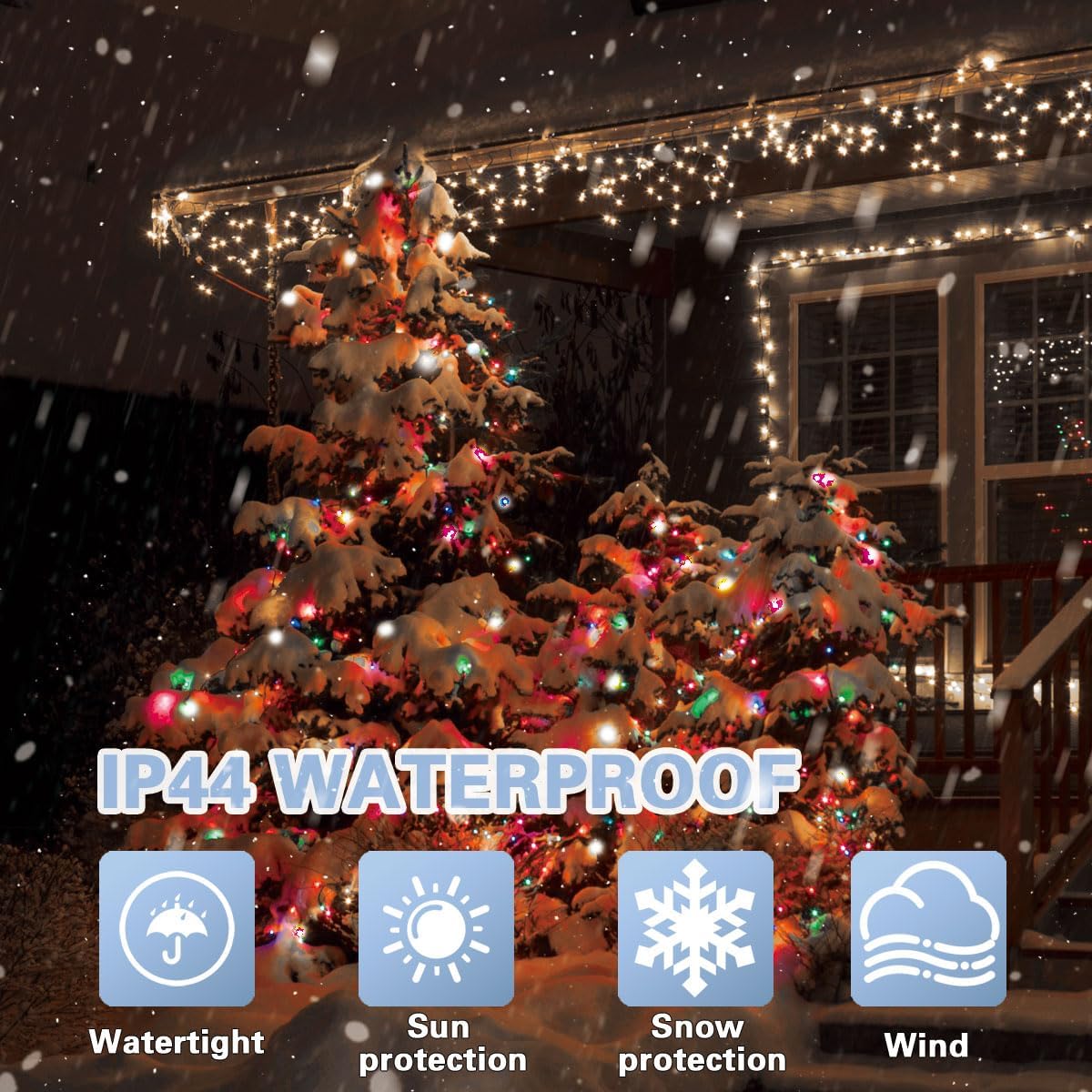 • Waterproof Outdoor String Lights: Our 200 LED waterproof string light has passed IP44 waterproof certification, it can resist water, perfect for indoor outdoor decorations, don't worry about using it in heavy rain and heavy snow, but warm tips please protect the plug.