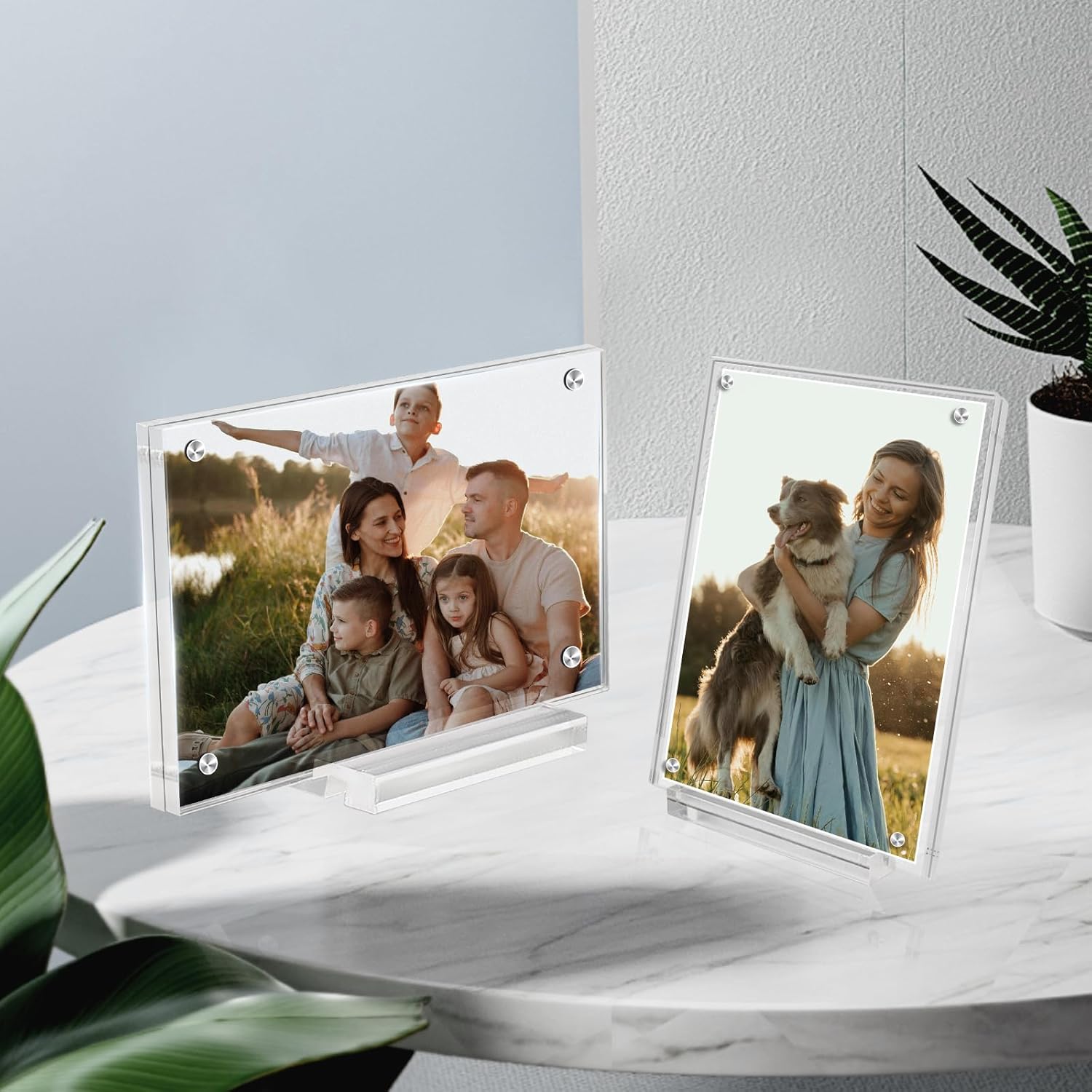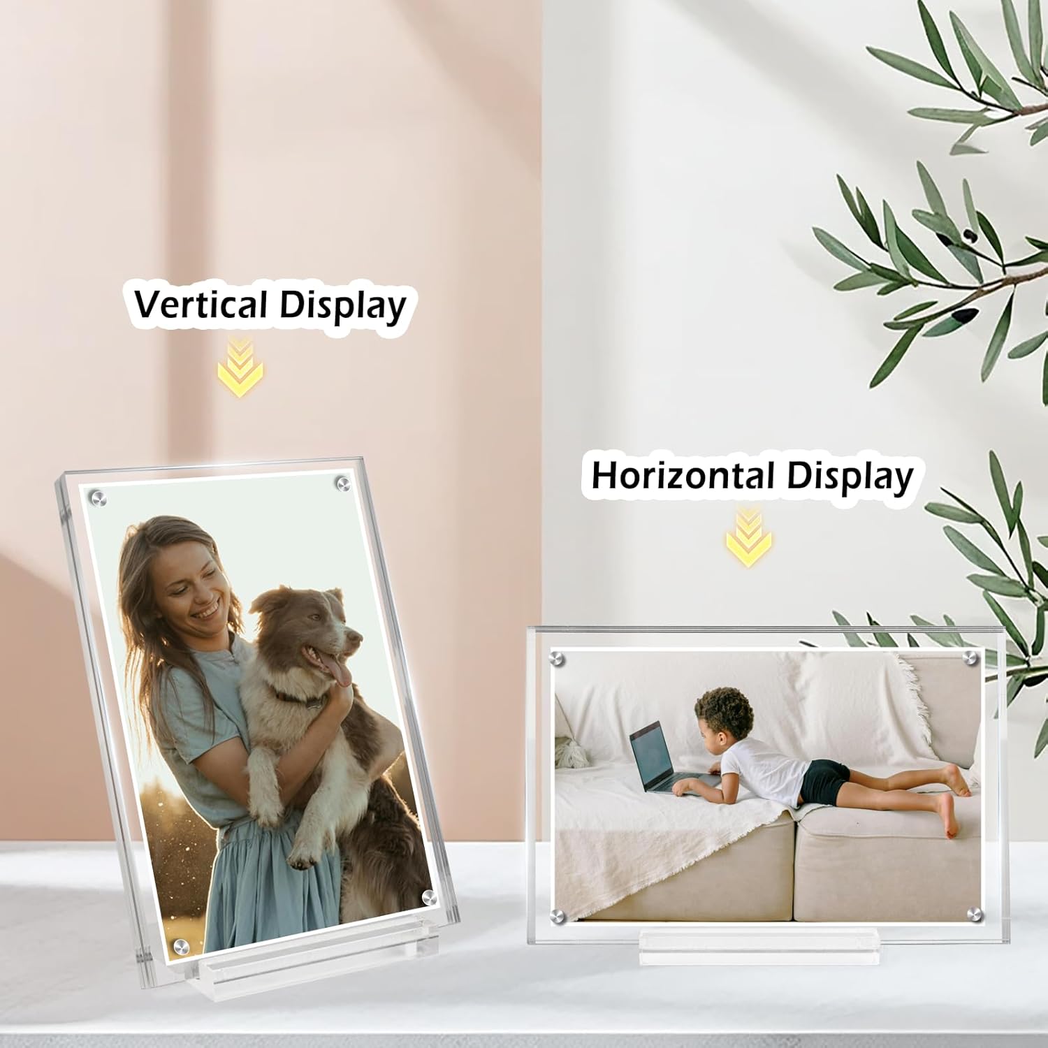• 4x6 Clear Frames: Measuring 4x6 inches,this frame fits photos of the same size or smaller. It is double-sided visible, and you can display 2 photos