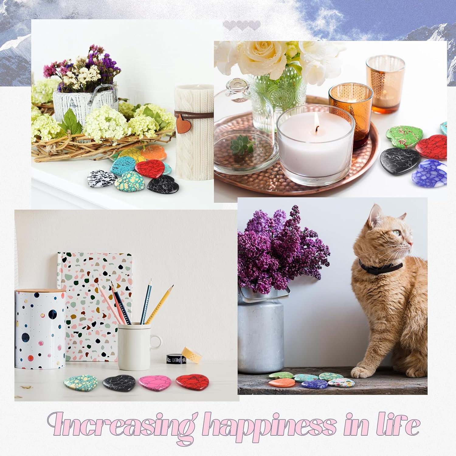Nuenen 30 Pcs Heart Shape Crystals Bulk 1. 57 Inch Gemstone Heart Stones Worry Stone Rocks Quartz Love Pocket Palm Hearts Bulk for Mother's Day Stress Relief Gift (Fresh Color)