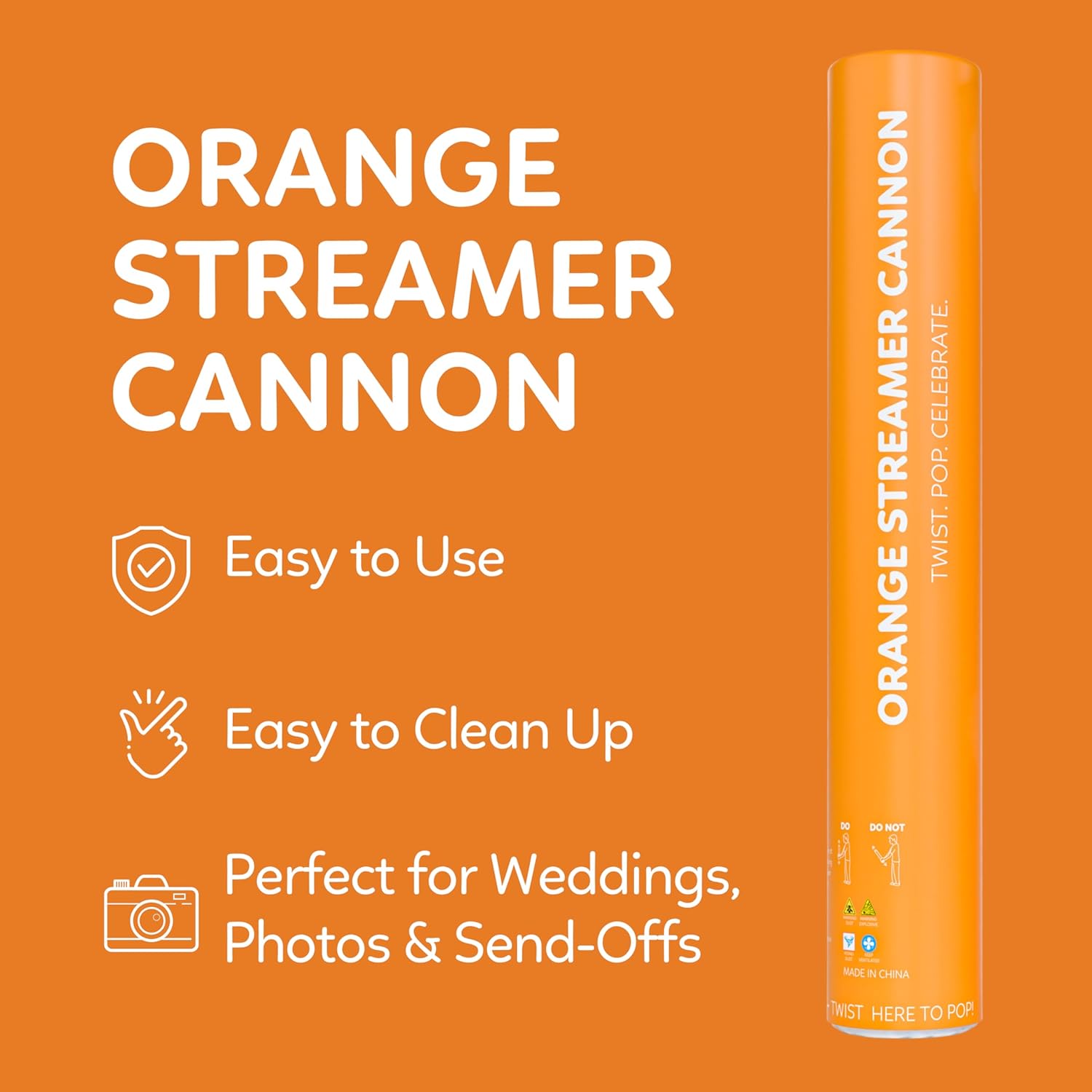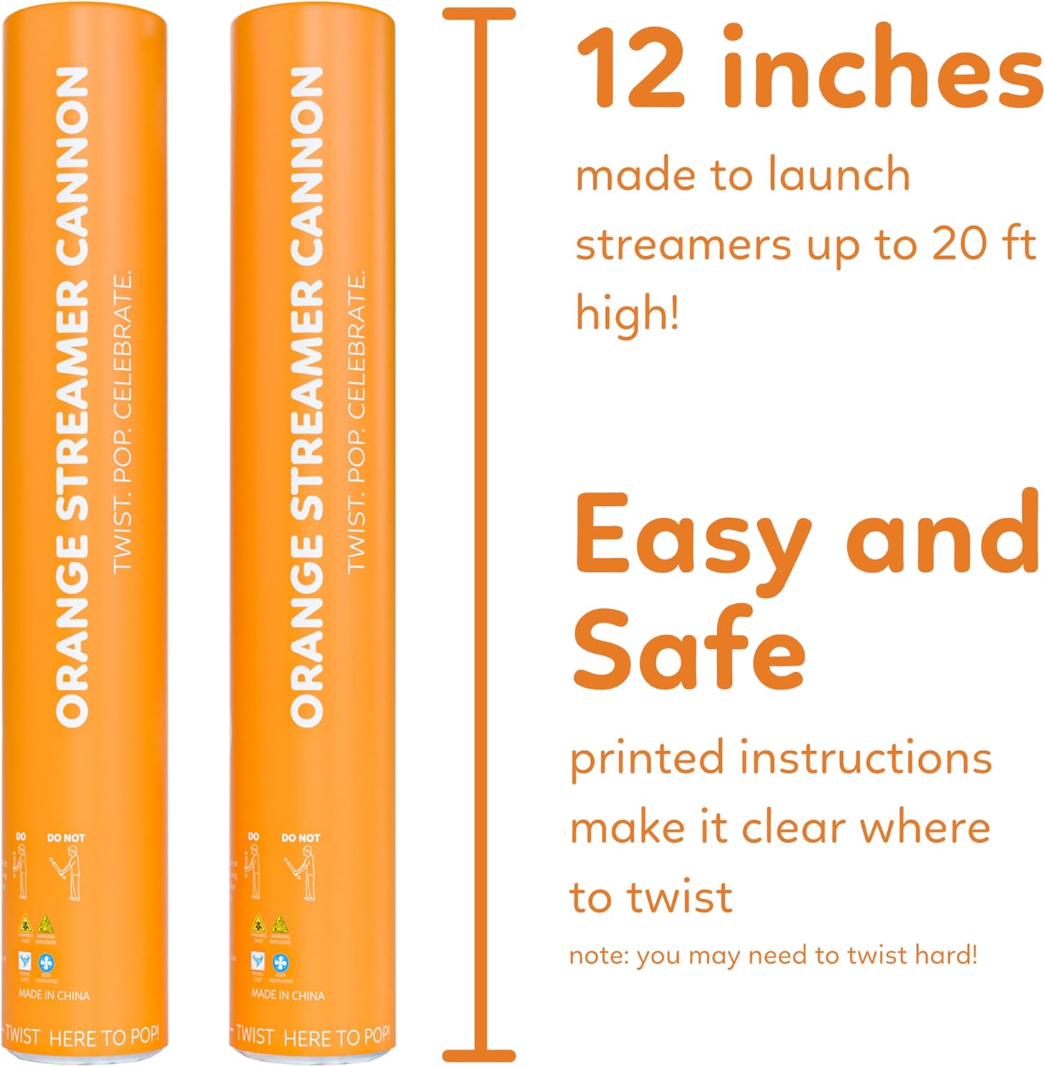 2 Pack Streamer Cannon Confetti Poppers | Biodegradable Orange Confetti | TUR Party Supplies | Launches Up to 25ft | Giant (12 in) | Party Poppers for Graduation, Birthdays, Weddings, and Memorial Day