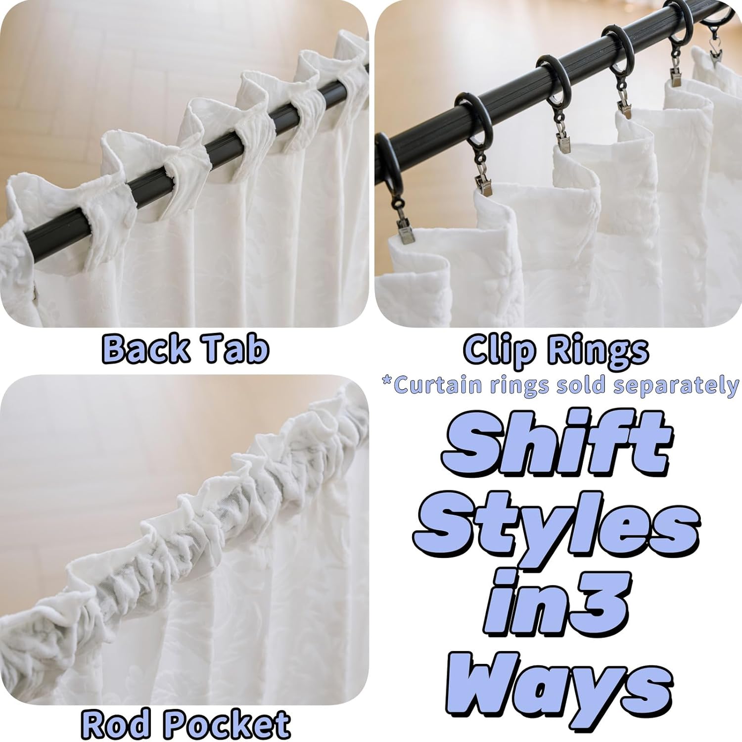• 2. Perfect Fit for Any Window Each set includes two 52" wide panels (104" total width) and comes in multiple lengths (45"–108"). The ready-to-hang rod pockets make installation effortless, fitting most standard curtain rods.