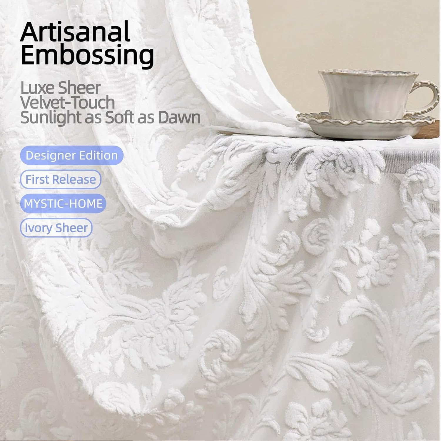 • 1. Elegant & Delicate Sheer Curtains Experience luxury sheer voile with exquisite craftsmanship—every stitch and thread reflects Parisian atelier quality. The 3D flocked texture and Rococo motifs add timeless elegance, while the weighted hem ensures effortless draping.
