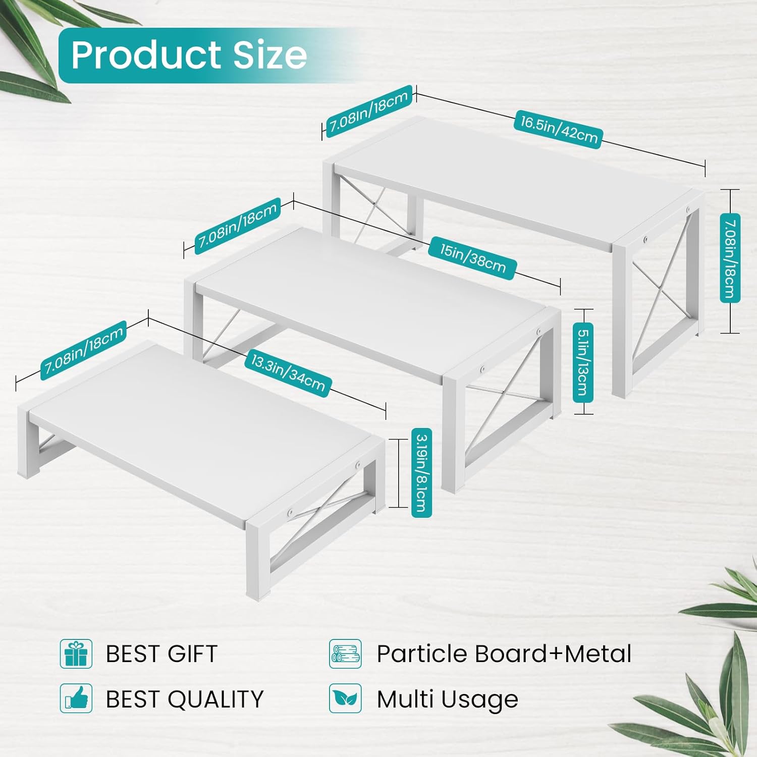 • 【Premium Materials】3-piece desktop display risers are made of robust steel and premium particleboard to ensure sturdiness and has a stronger bearing capacity. Rustic and aesthetic wood grain that fits perfectly with the X-shaped metal frame, adds a vintage rustic feel to your home.