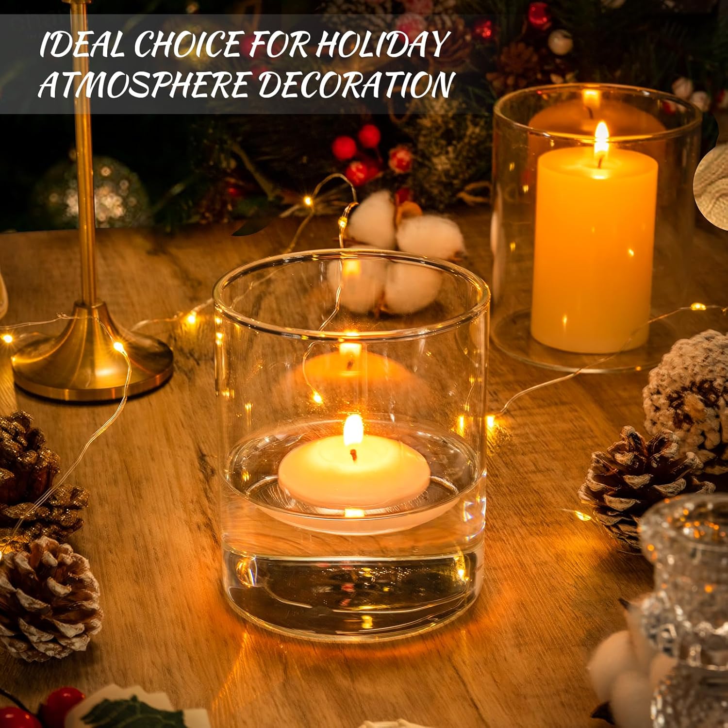 • Product Details: Include 12pcs 4 inch glass vases for centerpieces, each of exquisite glass vases measures 4" H x 3.4" W, the cylinder vases are suitable for flower arrangement, succulent plants, cylindrical candle holders, floating candle holders, as well as storage containers and center decorations filled with gems or lamps.