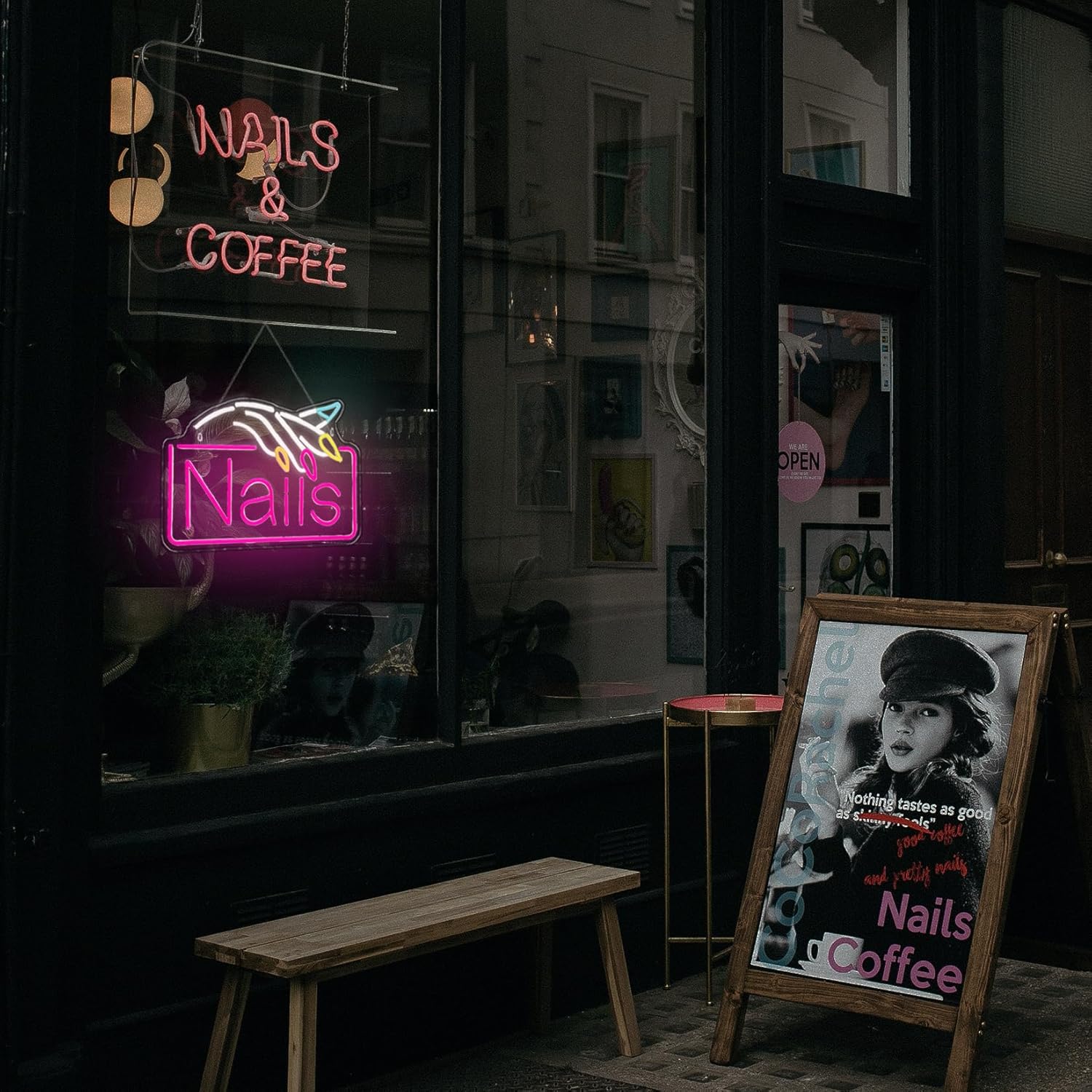 Nails Neon Sign Nail Salon Room Decor Window Wall Art for Nail Shop Storefront USB Powered 15.7"x10.7"